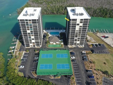 Bay Harbor Club Condo Bonita Springs Condos for Sale: Bay Harbor stands out as a prime destination on Hickory Blvd, catering to both beach lovers and boating enthusiasts. Encompassing over 5 acres, this property boasts a stunning pool and two hot tubs, providing an ideal spot to unwind while observing dolphins frolic nearby. With convenient boat access to the Gulf just minutes away, deeded beach access across the street, a kayak launch, boat docks, and pickleball and tennis courts, this location truly has it all. The newly renovated club room and generous guest parking enhance its charm, and it will soon feature gated security for added peace of mind. This Bay Harbor Club condo offers a fantastic opportunity for those looking to craft their dream beach retreat. With its unbeatable location, expansive views, and exciting possibilities, this property is a rare treasure waiting to be discovered. Don’t let the chance to own a piece of paradise slip away! The sunsets here are simply mesmerizing, turning each evening into a private display of nature’s artistry. Enjoy the convenience of your own dock, perfect for exploring the vast waters of the Gulf of Mexico, renowned for its abundant fishing and breathtaking coastal views. Ideally located between the back bay and the Gulf, this spot provides endless water activities right at your doorstep. This 7th-floor condo offers breathtaking near-panoramic views of the Gulf and Bay, which can be enjoyed from both the spacious interior and the wraparound lanai. The west-facing lanai is fully enclosed with 360 mph-rated hurricane glass and air conditioning, adding an extra 168 square feet of living space. The same glass has been installed in the master bedroom for enhanced protection. Some of the impressive upgrades in this spectacular unit include a deeded boat slip, a deeded covered parking spot, motorized shades, a reverse osmosis water system, a Grohe filter in the master bath shower, beautiful wood flooring in the bedrooms, and a Murphy bed in the guest room. The assessments have been paid, and this unit has sustained no damage. Schedule a showing to discover your new home!