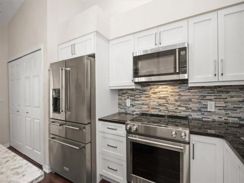 View Details Bermuda Park Bonita Springs Condos: Beautifully updated TURNKEY unit features 2 bed + Den + 2 bath + Carport with tranquil preserve views! The property has been lightly lived in by a seasonal resident. The unit lives large with great room living/dining; kitchen with lots of cabinets, island and breakfast area; large living/dining and screened lanai that is accessible from the kitchen and primary suite. You will love the open kitchen with top of the line KitchenAid stainless appliances including a convection oven and "5 door" refrigerator. Also Granite countertops and contrasting quartz island top, and glass tile backsplash. The Den has a closet and could easily be converted to a 3rd bed. The condo features cathedral ceilings, creating an open & spacious atmosphere that enhances the overall aesthetic. Interior colors are neutral and the main living areas has hardwood floors. Bedrooms recarpeted in 2019. 2nd floor unit means no noisy neighbors above. BRAND NEW ROOF (2025). Enjoy the abundance of wildlife and wading birds from the SE facing screened lanai. Laundry with full sized appliances in the unit and hurricane shutter storage is also in the laundry closet. All windows and doors are protective coated with an Armour Shield, to minimize any damage and help with electric bills. Community pool & cabana is a stone's throw away. Residents are also permitted access to enjoy the full amenities at the Villages of Bonita, the adjoining community. The Condo building did NOT have any flooding and Flood insurance is NOT required. Gated front entrance. Bermuda Park is centrally located to local shops, dining and nearby to the sparkling shores of the Gulf of Mexico with access to Lover’s Key State Park, Barefoot Beach, Bonita Beach Park, Fort Myers and Naples beaches.