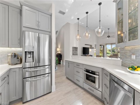 View Details Waterford At Bonita Bay Bonita Bay Bonita Springs Condos: Enjoy the peaceful view of the 14th hole of the Creekside golf course from this bright, sun filled Florida home. The END unit is SO well maintained offering THREE bedrooms, THREE bathrooms AND a TWO CAR GARAGE! New wifi controlled Trane AC, hot water heater, custom bar with Eurocave Inspiration wine refrigerator, recessed lighting in dining area and entrance foyer. Secondary baths have raised cabinetry with new granite tops, sinks and faucets. In the highly desirable Waterford neighborhood of Bonita Bay, you can walk to restaurants, shopping centers, the club, the pool and so much more - it is perfectly located within the esteemed Bonita Bay community. It all begins with the open concept living area, which flows seamlessly onto the enclosed lanai, where the views are spectacular. The lanai has sliding glass doors, allowing for year-round enjoyment and THE MOST tranquil backdrop. The golf course views behind the building are unmatched! The primary suite features large windows, a walk-in closet, and a spacious en suite bathroom with dual sinks, a soaking tub, and a separate shower. There are two additional guest bedrooms tucked privately away from the primary on the opposite side of the home - you will LOVE to entertain in this spacious unit! Waterford residents enjoy their own private pool and clubhouse, along with access to Bonita Bay’s unmatched amenities including a private beach park, full-service marina, walking and biking trails, pickleball, tennis, and optional membership to the Bonita Bay Club featuring five championship golf courses, a luxury spa, state-of-the-art fitness center, and fine dining. Bonita Bay is close to ALL that SWFL has to offer - world class dining/shopping, beaches, nature preserves, the burgeoning downtown Bonita Springs, downtown Naples and so much more! A very SHORT ten minute drive to RSW International Airport! Whether you are searching for your winter retreat or a permanent residence, this home could very well be THE ONE!