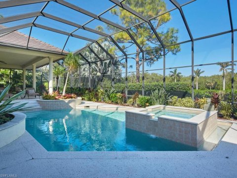 Creekside Bonita Bay Bonita Springs Homes for Sale: Experience this exceptional Harwick custom-built residence perfectly positioned on a spacious HALF-ACRE CORNER LOT IN THE HIGHLY DESIRABLE CREEKSIDE neighborhood of Bonita Bay. HOME HAS NEVER EXPERIENCED HURRICANE RELATED DAMAGE OR WATER INTRUSION. Grand double doors open to a stunning pool and spa at the heart of the home, with nearly every living space opening to this inviting outdoor retreat—perfect for relaxing or entertaining. This bright, spacious home offers 4 bedrooms+ den, 4 baths, A PRIVATE GUEST CABANA and a 3 CAR GARAGE. Each bedroom features its own en-suite bath and OVERSIZED CLOSETS. The large den/Gathering room includes a wet bar, wine cooler, custom built-ins, and desk, creating an ideal entertainment or work space. Take in TRANQUIL LAKE AND GOLF VIEWS overlooking the 8th hole of the Creekside Course, surrounded by beautiful Live Oaks, Palms, Staghorn ferns, and lush landscaping. EXPANSIVE SLIDERS AND WINDOWS fill the home with natural light and invite gentle breezes throughout the day. The kitchen offers stainless steel appliances, a wet bar, and wide-open views of the golf course. The primary suite features generous space, a sun-filled sitting area, and a luxurious bath with a sunken tub. The current owner loves the ease of the primary bath providing quick access to the private spa. Additional highlights include marble floors, an ENCLOSED SUNROOM and quiet sitting areas overlooking fountains, nature, and abundant wildlife. Major updates provide peace of mind: NEW ROOF, INTERIOR and EXTERIOR PAINT and INSTA-HOT WATER HEATER ( all less than 1 year old). Bonita Bay is Southwest Florida’s premier luxury community, offering an unmatched blend of resort-style amenities, natural beauty, and upscale living. Residents enjoy access to five championship golf courses, a state-of-the-art Sports Center with Har-Tru tennis courts, pickleball, resort pool, along with a world-class Lifestyle Center featuring advanced fitness facilities, spa, and salon services. The community’s full-service marina on the Imperial River provides direct Gulf access, wet and dry boat storage, fuel, and maintenance, complemented by the popular waterfront restaurant Backwater Jacks. Bonita Bay also offers a private Gulf-front beach club with shuttle service, lounge chairs, umbrellas, and shaded pavilions. Beautifully maintained community parks include walking trails, kayak launches, playgrounds, and picnic areas, over 12 miles of pathways wind through the community’s 2,400 acres. Recognized as an Audubon International Cooperative Sanctuary and a Blue Zones Community, Bonita Bay emphasizes wellness, environmental stewardship, and an active social lifestyle. Dining options range from casual waterfront meals to fine dining at the Club, with a full calendar of events, classes, and activities. With its combination of golf, marina access, beach amenities, nature preserves, and exceptional recreational offerings.