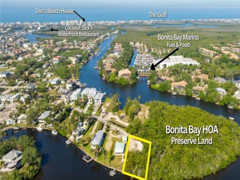 Tarpon Bend Unrec Bonita Springs Land for Sale: TWO GULF-ACCESS Parcels totaling .36 Acres. TFC2 ZONING ALLOWS DUPLEX OR SINGLE FAMILY. ADJACENT BONITA BAY LAND WILL NEVER BE BUILT ON. OVER 90 FEET OF DEEP RIVER FRONTAGE w/ ONE HIGH BRIDGE TO THE GULF. Dock a 40+ foot boat here, with plenty of room to freely design and build your Dream Home in Bonita Springs. World-class fishing, sandy & secluded beaches and waterfront restaurants are all at your fingertips from this unbeatable location. Gulf Beaches are 15 minutes by boat or 1.9 miles by bike. Downtown Bonita, Mercato, and the coming-soon Midtown Bonita Mall are all within 15 minutes by car. This may be your LAST OPPORTUNITY to build on a Gulf-access lot this large, for this price, and in this coveted neighborhood. THIS IS THE SECOND LARGEST LOT ON THE STREET! The adjacent peninsula is owned by Bonita Bay HOA as "Preserve Land." Bring your own Builder/Architect or use one of ours. Don't wait--this unique opportunity won't last long!