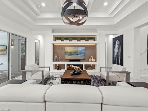 Valencia Bonita Bonita Springs Homes for Sale: Built in 2020, this Carolina model is being offered turnkey furnished and showcases extensive upgrades throughout. Situated on a corner lot with a spacious side yard, this home is ideally located — close enough to walk to the clubhouse, yet far enough away to avoid the sound of the pickleball courts. Located in Flood Zone X, No Flood Insurance required. Features include Impact Doors and Windows, a 3-car garage with epoxy flooring, and a heated pool and spa. The outdoor kitchen is equipped with a grill, vented hood, wine cooler, and refrigerator, creating the perfect space for entertaining. Inside, the gourmet kitchen offers a gas cooktop, built-in microwave, quartz countertops, large pantry, and under/over cabinet lighting. Additional highlights include an upgraded washer and dryer, oversized laundry room with abundant storage, and custom closets throughout. Elegant finishes include a neutral color palette, crown molding, upgraded front doors, designer chandeliers, window treatments, blinds on every window, and shiplap/woodwork in the living, dining, and master bedroom. The formal dining room and separate breakfast area with coffee bar provide versatile dining options . The primary suite features a large soaking tub, separate custom glass shower, upgraded flooring, and custom closet systems. A custom living room wall unit, two smart TVs, and Bose sound bar are included. Exterior landscaping is enhanced with up-lighting under palms and trees, front and back. Valencia Bonita is a 55+ community with resort-style amenities, including a 45,000 sq. ft. clubhouse, pools, pickleball, tennis, fitness center, spa, dining, and more.