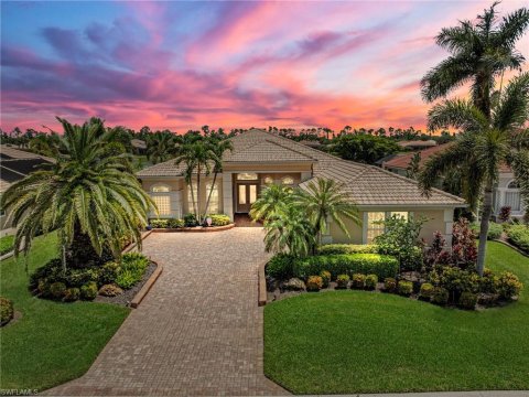 Belle Lago Estero Homes for Sale: Live the quintessential Florida lifestyle in this luxurious home featuring 5 Bedrooms and 5 Baths located on the largest waterfront lot at the end of the cul-de-sac. Choose your Principal Suite on the first or second floor and make the other a Guest Suite. This exquisite Belle Lago (NATURAL gas community) estate home is meticulously maintained. Enjoy the high-quality finishes, unique architectural details and seamless indoor-outdoor living space. Home showcases 2 offices, a loft, 3 Car garage which includes a separate work area and a spacious lanai which is a tropical oasis with heated pool and spa, outdoor kitchen and pool bath surrounded by extensive tropical landscaping. The lanai is ANOTHER room with an unbelievable oasis. Tropical palm trees and special lighting make this a spectacular area for entertaining or relaxing with family. The three quarter acre waterfront lot is designed and landscaped professionally. The yard is maintained by the HOA and allows for personal beds of flowers. Extensive plantings make this an exceptional garden to enjoy. OPTIONAL Golf Membership is available at Estero Country Club. Amenities include an 18-hole Gordon Lewis-designed golf course, driving range, practice facility, five har-tru tennis courts, two pickleball, two bocci courts and fitness center. Membership fee schedule available. Convenient access to RSW airport, Coconut Point Mall, Miromar Outlets, Gulf Coast Town Center, FGCU, Hertz Arena and beautiful Gulf beaches. Move in and enjoy luxury living while creating a lifetime of memories.