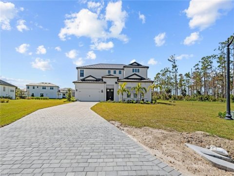 View Details Corkscrew Estates Estero Homes: Presenting the Ultimate in Elegance and Luxury in this beautifully designed home! This exquisite 4 bed, 3.5 bath + Den resides on an expansive .77-acre homesite in the Desirable Corkscrew Estates Gated Community. You will find attention to design and decor everywhere in the home, from 12ft coffered ceilings, Solid Core 8' interior doors, Impressive Zero Corner pocket doors with electric sunshades, custom built-ins surrounding the fireplace with a recessed tv in the great room to handpicked wallpaper in the powder and guest bath. Modern lighting and plumbing fixtures, Shiplap accent walls, Crown molding and Hunter Douglas Wood Shutters reside throughout the home. Enjoy hosting gatherings in the dining area and gourmet kitchen that includes an expansive quartz island, SS appliances, gas cooktop, gorgeous backsplash along with a brilliantly designed custom butler’s pantry with Sub Zero fridge. Primary suite exudes natural lighting from oversized windows, includes 2 large Walk-in closets and spa-like bathroom with large soaking tub and walk-in shower. Jack and Jill bathroom with double sinks, quartz counters and walk-in shower. The guest bedroom offers privacy with walk-in closet and access to an additional full bathroom that can be used as a future pool bathroom! The Laundry room is lined with cabinets for plenty of extra storage and a large farmhouse sink with custom faucet to handle all your laundry needs. With a Rear Southern Exposure, create your dream pool oasis just off the back lanai featuring stunning water views and the perfect setting to enjoy Florida outdoor living. The covered Lanai is prepped for your dream outdoor kitchen! The exterior includes an Oversized 3-car garage with durable epoxy-coated flooring, Impact Windows/Doors, entire home Generac Generator and extensive outdoor landscaping. Corkscrew Estates is conveniently located minutes away from restaurants, retail, grocery stores and I-75.
