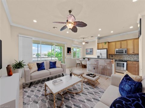 Meadows Of Estero Estero Condos for Sale: BEST VALUE in the Meadows of Estero—where luxury, convenience, and comfort come together in Estero’s most sought-after luxury coach homes community. Perfectly positioned between Naples and Fort Myers, this gated neighborhood offers a premium location, West of US 41 and outside any flood zone, with easy access to world-class beaches, RSW International Airport, Hertz Arena, Coconut Point Mall, Miromar Outlet Mall, Gulf Coast Town Center, and Florida Gulf Coast University. This 2nd floor corner residence impresses from the start with a brand-new roof, fresh exterior paint, and a spacious two-car garage. Step inside and experience 2,878 sq. ft. of air-conditioned living area, beautifully furnished, and move-in-ready — yes, all furnishings (with minimal exceptions) are included! The open, light-filled great room features neutral tile floors and flows seamlessly into a gorgeous kitchen outfitted with granite countertops, wood cabinetry, a breakfast bar, and a charming nook with peaceful preserve views. Elegant touches—tray ceilings, crown molding throughout, custom paint, and designer window treatments—add sophistication throughout. The 15'6" x 20' great room includes a separate 14' x 15'6" dining area. The expansive owner’s suite is a true retreat, offering private lanai access, a cozy 12'4" x 8'10" sitting area, and a luxury bath with a soaking tub, dual sinks, a large walk-in shower, and impressive closet storage. An interior laundry room with cabinetry, counter space, and a utility sink adds everyday convenience. Enjoy the Florida lifestyle on the spacious 23'5" x 11'2" lanai, complete with electric (and manually operable) "Storm Smart" hurricane screens—the perfect setting for relaxing or entertaining while overlooking your private, tranquil preserve. The open floor plan includes a dedicated space for a future elevator (currently used as extra storage), while guest bedrooms are thoughtfully separated for maximum privacy. Guests will also appreciate a generous bath with dual sinks and a walk-in shower, plus a convenient half bath for gatherings. Buy with confidence—Meadows of Estero has strong financials and no outstanding assessments. HOA fees cover interior/exterior water, cable, internet, landscaping, professional management, and an on-site representative for peace of mind. Residents enjoy a vibrant lifestyle with an active social calendar, fitness center, and a community pool and spa. Pet friendly! Two dogs allowed (up to 100 lbs each; no aggressive breeds). This impeccably maintained, fully furnished home is the perfect blend of luxury, comfort, and convenience—ready for you to move in and start living the Florida dream.