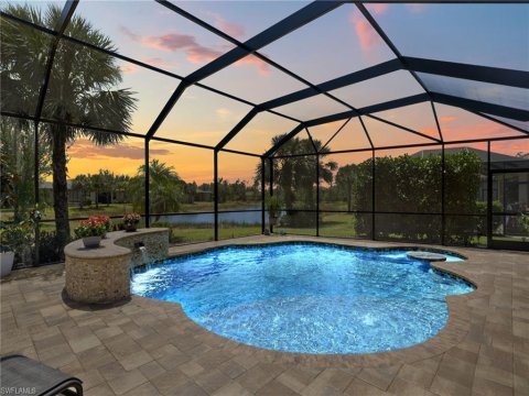 View Details Preserve At Corkscrew Estero Homes: This former Cameron Model Home was designed for luxurious living, showcasing countless upgrades and thoughtful features. With three bedrooms, a den, and three bathrooms, this home boasts a private saltwater pool and spa on a spacious lanai overlooking serene lake views. The Southern exposure enhances the inviting atmosphere, perfect for relaxation or entertaining. Inside, you'll find beautiful hardwood flooring, custom-built closets, hidden storage, a gourmet kitchen with a wine cooler and double island, plantation shutters throughout, fresh interior paint, newly sealed pavers, hurricane protection, and newly refinished flooring in the extended (23' deep) garage. Located just a short walk to the clubhouse and amenities, this amenity-rich gated community features a resort-style pool, fitness center, yoga room, tennis and pickleball courts, and a stunning clubhouse, all with low HOA fees. Conveniently situated near A-rated schools, I-75, shopping, dining, and RSW Airport, this home offers the perfect blend of elegance and practicality. Schedule your private showing today!