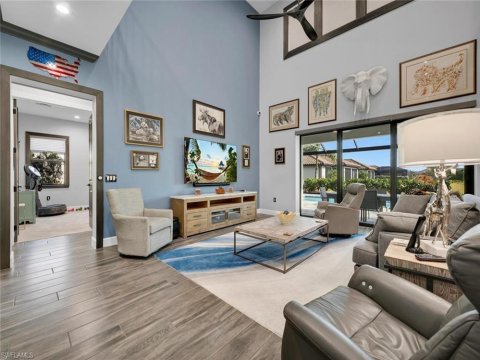 The Place At Corkscrew Estero Homes for Sale: Exquisite Lakefront Retreat in The Place at Corkscrew! Welcome to this stunning 4BR + Den/Office, 3BA single-story home where timeless elegance meets modern luxury. Perfectly positioned on an oversized waterfront lot, this residence captures breathtaking lake views and showcases a heated saltwater pool & spa framed by lush tropical landscaping. From the very first glance, the professional landscaping, and custom glass entry door set the stage for the beauty within. Step inside to discover soaring 12' coffered ceilings, and plank tile flooring that flows seamlessly through the open-concept living spaces. Walls of 10' sliding glass doors invite natural light and create a graceful connection to the outdoors. The gourmet kitchen is a showpiece, featuring quartz counters, pull-out shelves and under-cabinet lighting, premium Whirlpool appliances, a custom walk-in pantry, and an oversized island designed for gatherings. The serene primary suite offers a true retreat with a tray ceiling, plantation shutters, and a spa-inspired bath boasting a soaking tub, frameless glass shower, and expansive walk-in closet. Outdoors, indulge in your private oasis with a spacious covered lanai, picture window screen, Storm Smart shade, and the sparkling heated saltwater pool & spa—all designed to maximize relaxation and panoramic lake views. Additional luxuries include a French-door den, a versatile planning center, and an epoxy-coated 3-car garage. Life at The Place at Corkscrew is unparalleled, offering resort-style amenities: a zero-entry lagoon pool with a 100-ft waterslide, state-of-the-art fitness center, tennis, pickleball, bocce, sand volleyball, dog park, playground, and multiple dining options including the Barefoot Bar & Grill, Bourbon Bar, and café. Conveniently located near a new Publix Plaza, RSW Airport, Miromar Outlets, and Gulf Coast Town Center, this home embodies the perfect blend of luxury, comfort, and lifestyle.
