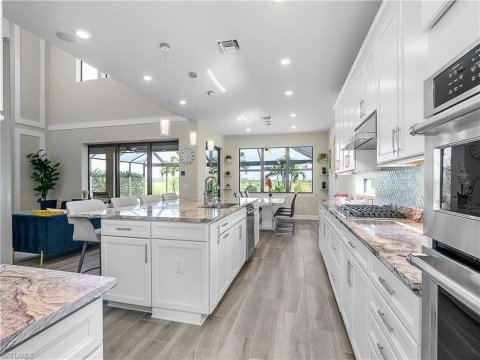 The Place At Corkscrew Estero Homes for Sale: Introducing this custom, reimagined, & extraordinary “Heatherton” estate pool home, showcasing 4,332 sq.ft. of designer-upgraded living space, thoughtfully crafted for both luxury and functionality. This residence offers 5 bedrooms with 5 full bathrooms, an upstairs loft, and a dramatic $40k glass-paneled catwalk & staircase, this home delivers something unique & special! The heart of the home is the fully reimagined, chef-inspired kitchen, featuring sleek black quartz countertops, custom white shaker cabinetry with glass-front uppers, and a striking modern black range hood as the focal point. An extended wall of built-in cabinetry provides exceptional storage, while two large picture windows flood the space with natural light and create a true indoor-outdoor connection that is perfect for passing drinks, food, or hosting al fresco gatherings. A massive custom walk-in pantry offers impressive storage capacity and includes a dedicated secondary refrigerator. Contemporary tile flooring, under-cabinet lighting, and clean modern lines complete this showpiece kitchen. The two-story family room captures panoramic views of the outdoor oasis, including one of the home’s most coveted upgrades: an extended 25-ft lanai, which is a feature many homeowners wish they had added. The newly finished travertine lanai, resort-style pool with waterfall, and peaceful preserve backdrop set the tone for relaxation, entertaining, and unforgettable Southwest Florida sunsets, thanks to the property’s highly desirable western exposure. The first floor also includes a private guest bedroom and full pool bath. Upstairs, the luxurious owner’s suite offers a separate sitting room, two walk-in closets, dual vanities, a soaking tub, and an oversized walk-in shower. All secondary bedrooms feature walk-in closets and easy access to full baths, providing comfort and privacy for family and guests. The expansive living area provides endless possibilities and the open layout makes it easy to tailor the home to your lifestyle. Nestled inside The Place at Corkscrew, residents enjoy an unmatched resort lifestyle: a zero-entry pool with two dramatic waterfalls and a 100' waterslide, poolside food & drink service, indoor/outdoor dining, café, two-story fitness center, child care center, pickleball, tennis, volleyball, basketball, dog park, and more. Welcome to luxury, comfort, and lifestyle all in one incredible home.