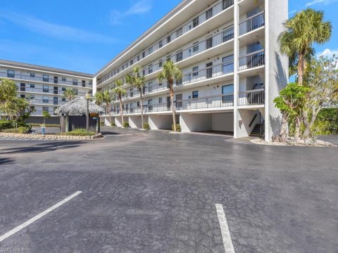Anglers Cove Marco Island Condos: Don't miss this updated 1 bed 1 bath Anglers Cove condo with south exposure. Great investment condo with weekly rentals allowed and electric included in condo fee. Updated kitchen with full size stainless steel fridge, dishwasher, solid cherry cabinets and granite countertops, kitchen island with cook top stove and extra storage. New A/C in 2018 and water heater also 2018, full size washer/dryer in unit for convenience! Travertine stone walk in shower for a luxury feel and new vanity. Travertine flooring on the lanai with a great view of the courtyard pool area and small glimpse of the on site tiki bar/restaurant and water of the Marco River. New carpet in bedroom installed June 2024. Anglers Cove is a waterfront resort style community with boat docks available for leasing and is direct Gulf access. Along with 2 huge pools 2 hot tubs, 2 tennis courts.
