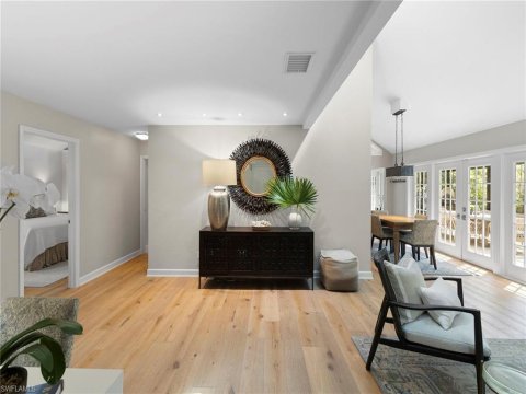View Details Bent Pines Villas Condo Naples Condos: Discover the charm of this rare, pet-friendly Garden Villa in the lush, tropical enclave of Bent Pines Villas! Ideally, just minutes from downtown Naples, Venetian Village and Naples pristine beaches, this residence puts the best of Southwest Florida right at your doorstep. Go inside to an expansive and thoughtfully designed interior that blends functionality with timeless style. The layout is one of the community’s sought-after floor plans, which features a bright inviting sunroom that is ideal for relaxing, reading and entertaining. The kitchen has been recently updated with stylish finishes. Additional upgrades include a newer roof, water heater, hardwood floors and beautifully renovated baths. Offered partially furnished, the interior reflects the vision of a professional designer, showcasing sophisticated pieces selected for comfort and timeless appeal. High vaulted ceilings, plantation shutters, and a calming neutral palette create a light and airy atmosphere. The main floor hosts a large bedroom, a stylish bath, and a flex room that can be a second guest room or office. Upstairs features the largest bedroom, complete with en-suite bath and walk-in closet. Blending indoor elegance with effortless outdoor living, French doors lead from the spacious living and dining area to a large screened and paved lanai, as well as an open-air patio, ideal for soaking up the Florida sunshine. Extra storage options abound, including a private shed for bikes and beach gear. Residents of the Bent Pines Villas enjoy access to a serene community pool that overlooks a tranquil lake, ideal for unwinding or connecting with neighbors. With upscale shopping, dining and world-class beaches just moments away, this villa offers a seamless blend of comfort, style and convenience, an exceptional retreat for those seeking the best of Florida living!