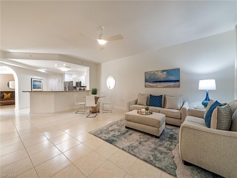 View Details Treasure Bay Bridgewater Bay Naples Condos: GLISTENING WATER VIEWS from this first floor lake front END residence! Light & bright turnkey furnished 3 bedroom, 2 bath garden condo featuring tile in all main areas, laminate "wood look" flooring in bedrooms, walk in shower in the master bath with separate dual vanities, accordian shutters on the lanai and entry, a detached garage and more! Green space next door and guest parking nearby which is a big plus! Amenities and social opportunities abound in Bridgewater Bay with a resort style pool and spa, screened lap pool, fitness center, pickleball courts, tennis courts, bocce courts, basketball court, billiards, card/reading room and more! The bonus is the availability of an extra large fenced lot for RVs, boats & trailers, etc. for a reasonable annual fee to Owners. Enjoy easy access to both Airport Pulling and Livingston Roads for quick trips to Waterside Shops and Mercato, elegant and casual restaurants, the beautiful beaches of Clam Pass, Vanderbilt Beach and Wiggins Pass State Recreational State Park and world class golf courses, all just minutes away. Come experience the Florida lifestyle!