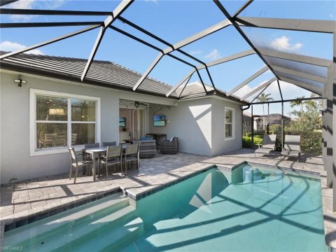 View Details Canopy Naples Homes: Welcome to your own slice of paradise! Experience tranquil lakefront living in this coastal-style home, perfectly positioned at the center of the lake to capture serene fountain views and breathtaking western sunsets. Venture out to your private heated pool, complete with a soothing waterfall feature, where you can relax and unwind in the screened lanai—ideal for alfresco dining or enjoying evening cocktails as the sun sets on another picture-perfect day. Whether you're lounging poolside or savoring sunset views, this home offers an everyday escape that feels like a vacation. Step inside to a light-filled, open-concept White Sand II floor plan, thoughtfully designed for both comfortable living and effortless entertaining. The spacious great room flows effortlessly into a casual dining area and a bright, airy kitchen featuring espresso-toned wood cabinetry with 4 deep storage drawers, quartz countertops, under-cabinet lighting, a walk-in pantry, stylish tile backsplash, and stainless-steel appliances—including a newer refrigerator. With 1,946 square feet of thoughtfully designed space, this home includes 2 guest bedrooms, a versatile den with wood flooring, and a serene primary suite boasting lake views, two walk-in closets, and a beautifully updated ensuite bath. Additional features include easy-to-maintain porcelain tile throughout the main living areas, crown molding, plantation shutters, upgraded lighting & ceiling fans, and a finished laundry room with cabinetry and utility sink. Whether you're entertaining guests or enjoying a peaceful afternoon by the pool, this home offers the ideal Naples lifestyle—relaxed, inviting, and full of everyday comfort. Located in Canopy, a serene, gated community nestled in North Naples, offering a tranquil lifestyle amidst lush preserves and sparkling lakes. Now zoned for the brand-NEW Bear Creek Elementary School. Conveniently located near Collier Boulevard, Canopy provides easy access to Naples' pristine beaches, world-class shopping, dining, and top-rated golf courses, making it an ideal retreat for those seeking a balance of serene relaxation and convenient access to Southwest Florida’s best attractions.