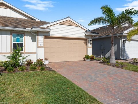 View Details Enbrook Naples Homes: PRICED TO SELL!! MOVE IN READY—2023 BUILD!! Welcome to this elegant and meticulously maintained home in beautiful Naples, Florida! This home is one of the few villa's in Enbrook that is located in "X" flood zone which means NO flood insurance required AND comes with transferable Builder Home Warranty. A stunning 2 bedroom + den, 2 bathroom residence boasts modern features, high end finishes and an inviting open concept design - perfect for both relaxation and entertaining. You will fall in love with the stylish tile wood plank flooring, modern lighting and ceiling fans and premium finishes throughout. Each hurricane-rated window is equipped with beautiful custom Plantation Shutters. The large hurricane-rated lanai slider has a wonderful custom power shade to operate at the push of a button to allow the natural light to flow throughout. The gourmet kitchen boasts upgraded cabinetry, stainless steel appliances, convection oven, quartz countertops and large island to enjoy your morning breakfast. The luxurious primary suite features a walk in closet with custom closet organization, dual vanity and large walk-in tiled shower. This SMART HOME complete with an added ADT Alarm System with window and door sensors, plus cameras will not only provide extra security but allow you to control your home selected lights, thermostat, doors including garage electronically by the touch of your cell phone. The covered screened-in lanai is a perfect oasis for enjoying Florida's beautiful year-round weather. In addition to the private western facing lot you will notice the added benefit of extra land on this one-of-a kind lot. Located in the vibrant Enbrook community, this home offers resort-style amenities including a modern clubhouse with fitness center, pool table, kitchen use and plenty of seating for your party, sparkling pool, pickleball and tennis courts! Enjoy easy access to Naples' and Marco Island pristine beaches, a wide variety of shopping, tantalizing dining and entertainment galore while living in a peaceful and picturesque neighborhood. Don't miss this incredible opportunity to own a beautiful-easy-to-maintain 2-car garage villa in one of Naples' most desirable pet-friendly communities! Schedule your private tour today!