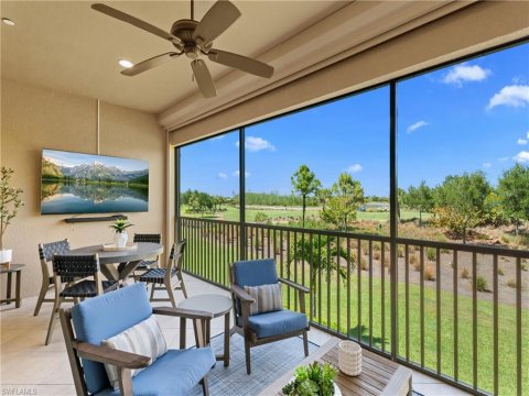 Esplanade Naples Condos for Sale: Welcome to the BEST-PRICED GOLF HOME in Esplanade Golf & Country Club, where a FULL GOLF MEMBERSHIP INCLUDED and every day feels like a resort getaway. This immaculate, turnkey-furnished coach home offers 2 bedrooms, 2 bathrooms, and 1,717 square feet of bright, open living space that’s thoughtfully designed for both relaxation and entertaining. From the moment you step inside, you’re welcomed by a sense of lightness and calm. Updated LED lighting and new fixtures enhance the open-concept layout, where the kitchen, dining, and living areas flow effortlessly together. The kitchen is both stylish and functional, featuring stainless steel appliances, granite countertops, a designer tile backsplash, and a walk-in pantry—perfect for cooking, hosting, or simply enjoying a quiet cup of coffee. Slide open the glass doors and step onto your expansive screened lanai overlooking the 8th hole of the championship golf course. Whether it’s morning sunrises or sunset cocktails, the peaceful golf course views offer a daily escape just outside your door. The spacious primary suite is a tranquil retreat, complete with golf course views, a generously sized walk-in closet, and a spa-inspired bathroom with dual sinks and a walk-in shower. The private guest bedroom and bath are equally inviting, providing a comfortable and quiet space for friends or family. Additional features include hurricane-impact windows and doors, custom cabinetry and shelving, tray ceilings, crown molding, a one-car garage, and the convenience of owning your own golf cart for easy access throughout the community. Located near the front of the neighborhood, this home provides quick access to Esplanade’s unmatched amenities. Play a round on the private 18-hole golf course, lounge by the resort-style pool with cabanas and the Bahama Bar, enjoy tennis, pickleball, bocce, or work out in the state-of-the-art fitness center. Unwind at the Koquina Day Spa or indulge in the on-site dining options, including a fine restaurant, wine-tasting room, and Starbucks-style café. For added convenience, Bellano residents also have access to a satellite pool just a short walk away. This is more than just a 2-bedroom home—it’s a lifestyle rich in comfort, connection, and daily enjoyment. Don’t miss this rare opportunity to own the best-priced golf home in Esplanade Golf & Country Club. Schedule your private showing today.