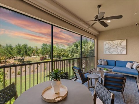 Esplanade Naples Condos for Sale: Welcome to Esplanade, one of Naples’ most sought-after luxury resort-lifestyle gated communities. Step into this professionally decorated home, where every furnishing, finish, and accessory has been thoughtfully selected to create an inviting space that seamlessly blends comfort, functionality, and style. Offered with furniture negotiable, this residence provides a turnkey opportunity with flexibility to suit your preferences. Relax in the tiled living room beneath soaring volume ceilings, or slide open the glass doors to take in tranquil lake and golf course views. From the screened balcony, enjoy nightly sunsets painted across the sky—your private front-row seat to nature’s beauty! The fully equipped kitchen boasts granite counters, stainless steel appliances, and a sunny breakfast area. In the primary bedroom suite, you’ll find large walk-in closets and a private bath with a step-in shower. Esplanade’s sports complex is a highlight, offering amenities through the social membership, including a lushly landscaped resort pool, wellness center, Har-Tru tennis courts, and pickleball. On-site, you’ll discover a restaurant, culinary center, and the Bahama Bar, serving your favorite drinks and daily specials. Esplanade’s ideal location is close to shopping, and the pristine beaches of the Gulf are just minutes away. Naples’ paradise lifestyle awaits!