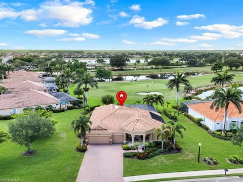View Details Estates At Heritage Bay Heritage Bay Naples Homes: Full golf membership included! This immaculate Doral model is situated on one of the largest oversized pie-shaped lots in Heritage Bay and is one of only four homes in the entire community with no adjacent neighbor in the front, offering added privacy and stunning views. Enjoy breathtaking, panoramic southeastern exposure overlooking the #4 green and lake. Offered furnished, this home is loaded with upgrades including custom closets, coffered ceilings, crown molding throughout, granite countertops, stainless steel appliances, hurricane panels, plantation shutters on every window,new pool/spa electric heater installed in 2025, variable speed pool pump installed in 2023 and a 5 ton HVAC system installed in 2022. Located just a short 3-minute walk from the newly completed resort-style pool and full-service outdoor restaurant, this home is perfectly positioned to enjoy the best of what Heritage Bay has to offer. The recently renovated clubhouse and brand-new Grille Room overlooking the golf course and lake elevate the lifestyle even further. Heritage Bay is one of Naples' premier bundled golf communities, featuring 27 holes of championship golf, 7 HAR-TRU tennis courts, a state-of-the-art fitness center with yoga, spin, and weight rooms, as well as pickleball, bocce, and more. The special assessment for community improvements has been paid in full by the seller—just move in and enjoy!