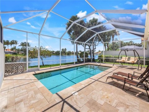 Island Walk Naples Homes for Sale: Enjoy beautiful sunsets in this lake front home in the desirable Island Walk community! This spacious 3 bedroom plus den home is the elegant Oakmont floorplan, with the rarely available extended living area (an additional 200 sq ft under air). Open concept kitchen, dining and living area, with wall to wall sliders to the screened lanai and pool. Spacious primary suite with amazing closets, en suite bath and private entry to the lanai. The home boasts two very unique teak built-ins which give it a cool mid-century modern vibe! Additional hanging shelf system in the garage, as well as finished flooring in the attic, provides storage space to meet all your needs! New 4-ton Rheem HVAC (2024) and newer HW tank, tiled garage floor, plantation shutters throughout, new pool pump, solar cover, electric awning on lanai, leaf filter system (2022) and hurricane protection complete the package. Residents of Island Walk enjoy a large town center offering many amenities as well as hair & nail salon, post office, gas station, car wash, popular restaurant, fitness center, resort and lap pools, pickleball, tennis, bocce, and a putting green. Conveniently located near beaches and everything Naples has to offer.