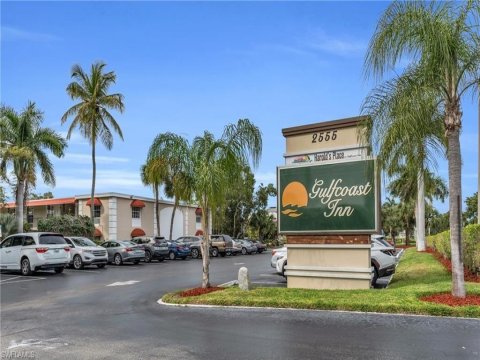 Gulfcoast Inn Of Naples Moorings Naples Condos for Sale: Where Tropical Paradise meets Savvy Investment!! Here at the GulfCoast Inn, not only is the location going to knock your socks off -- the ease of renting will have you saying Cha-Ching! Near World-Class Beaches, shopping, dining, beautiful scenery and perfectly manicured everything, the central location allows for the Perfect Florida Lifestyle options. Upon entering the well-kept main office, you will find the front desk and breakfast area for guests/owners. 3 restaurants ON SITE for super easy living. The renowned "Harold's Place" is your poolside destination for a delicious burger and a stiff drink. If you are feeling like something just a few steps away, you have Fujiyama and Vesuvio's Pizza right there as well. The resort style pool has tiki tables to fit the whole vibe, plenty of loungers and umbrellas for shade. There are only two floors, and this condo is on the 2nd floor so NO flooding up there! Just the right sized studio, complete with kitchenette and bathroom. Gorgeous wood cabinetry, tile floors and recent updates inside. SUPER CLEAN!! There are multiple vending machines and ice machines around the property. Free Laundry room for owners and storage area for bikes, goodies, etc. Coin-Op laundry for tenants. Tons of Parking!! This place is RIDICULOUSLY AFFORDABLE considering the average home price in the neighborhood. You are nestled in one of the most expensive zip codes in the country - yet spending less than 140K! Don't walk, RUN over and take a peek at this Fantastic deal! Perfect for ANYONE ~ from snowbirds to college students and everyone in between! One-stop-shop with management on-site. You can book this long term or as short as nightly. Such flexibility with this property. It is great to add to your real estate portfolio - or to make this your little Florida-getaway. WELCOME TO PARADISE!
