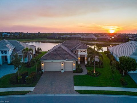 Canoe Landing Naples Reserve Naples Homes for Sale: Experience the ultimate in luxury and resort-style living in this exceptional 2019 Stock-built Marathon 3 floor plan home. Perfectly situated on an oversized western exposure lot with breathtaking sunset views over the lake. Spanning 4,050 total sq. ft. of indoor and outdoor living space. Gorgeous wide plank white oak engineered hard wood flooring throughout much of the home. This meticulously upgraded home offers 3 bedrooms plus an office/den, 3.5 baths, soaring volume ceilings, and an open-concept great room with media wall with open and closed storage. The gourmet kitchen is a chef’s dream, featuring an expansive island, KitchenAid appliances, a walk-in pantry, tiled backsplash and so much more. The primary suite is a private retreat with custom his-and-hers closets and a spa-like bath with a freestanding tub and walk-in shower with seamless shower doors. Smart home technology allows you to control so much with apps and Alexa technology. Step outside to an oversized saltwater pool, integrated spa, summer kitchen, panoramic screened lanai, and custom pool lighting, plus electric storm smart fabric Kevlar screens to close off the covered lanai space which are all designed for relaxation and entertaining. Additional upgrades include a whole-home generator, impact windows, an upgraded electrical panel, an instant hot water heater, enhanced landscaping, and a 3-car extended garage with epoxy flooring, and electric keypad entry. This home is also able to add a dock at the rear of the property if you so desire. Nestled within the exclusive, gated community of Naples Reserve, this home offers low HOA fees and access to world-class amenities, including a resort-style pool, tiki bar with food and beverage service, state-of-the-art fitness center, bocce, pickleball, tennis, sand volleyball courts, a lakefront beach, marina, kayak and electric boat rentals, scenic walking and biking trails, two dog parks, and a vibrant social calendar managed by an on-site Lifestyle Director. Whether seeking tranquility or an active social scene, Naples Reserve delivers the perfect balance. This move-in-ready masterpiece offers an unparalleled lifestyle.