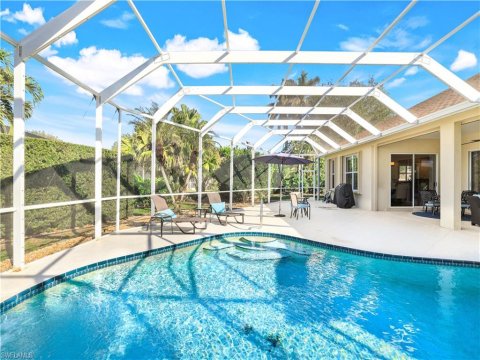 View Details Orchards Naples Homes: Much sought after gated community in convenient location. Approx 4 miles to beaches. This well maintained remodeled 3/2/2 car garage features an updated salt water pool, heated pool/spa with screened enclosure and travertine stone deck. The pool area is an oasis to enjoy the Florida sunshine with southern exposure. Covered Lanai has electric hurricane shutter and pull down sun shade. Light and bright open spacious great room floor plan. The eat in kitchen includes granite tops, stainless steel appliances, large island and snack bar and access to the back yard. The master suite has sliding door to pool area, private bathroom and walk in closet with built in's. Master bath has shower and granite countertops on vanity with dual sinks. Home has vaulted ceilings, new roof in 2011, A/C 2017, Hot water heater 2015, Hurricane Shutters, 18" tile on diagonal in main living areas, and Over the Air digital whole house antenna. All plumbing has been re-piped. Hurricane shutters. Paver brick driveway and walkway. Beautiful tropical landscape. Flood Zone X so no flood insurance needed. This is a MUST SEE Home. Low HOA fees, great school district, central location, close to everything. Orchards amenities include gated entry, clubhouse, fitness center, community pool and spa, community room, tennis courts, basketball court, BBQ area and sidewalk/walking/jogging path and tot lot. Click on "virtual tour" link to see a walk through video of the property.
