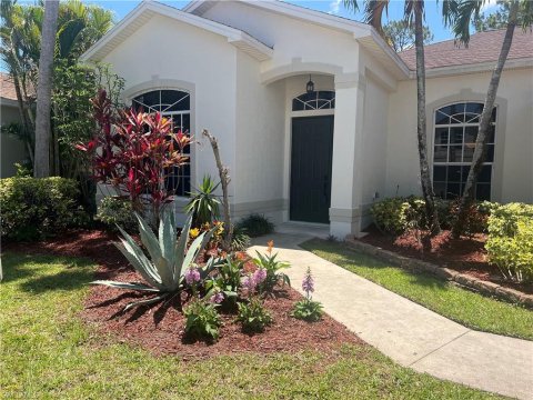 View Details Pebblebrooke Lakes Naples Homes: Located in the highly sought-after and established community of Pebblebrook Lakes, this charming 3-bedroom, 2-bathroom single-family home offers both comfort and convenience. Perfect for families, the location is fantastic with children able to bike or walk to schools, including Laurel Oaks Elementary, Oakridge Middle School, and Gulf Coast High School. Recent updates include a new roof & gutters installed in 2022, a new AC system replaced in 2020, exterior repainted as well as new washer, dryer and dishwasher all of which have 5 year extended warranties offering peace of mind for years to come. Inside, this light and bright home features an eat-in kitchen with vaulted ceilings, white cabinetry, and appliances, complemented by neutral tile flooring. The spacious great room also boasts vaulted ceilings and neutral tile, making it easy to blend with any décor. The generous main bedroom offers plush, neutral carpet, a large walk-in closet, and an en-suite bathroom with double sinks, Corian countertops, and a shower. The two guest bedrooms are equally charming with neutral carpeting and ample closet space. The guest bathroom includes a tub/shower combination with Corian countertops. Additional highlights of the home include a large laundry room and a two-car garage. The screened-in lanai provides a wonderful space to unwind while sipping your favorite beverage. This home is ideally located near the Pebblebrook Shopping Center, the brand-new Founder’s Square Shopping Center, and offers quick access to I-75, hospitals, parks, entertainment, and more.