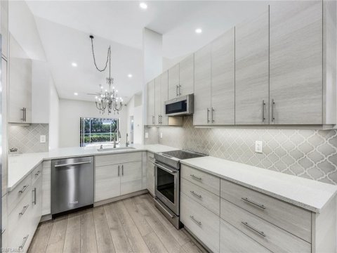 View Details Shadowood Villas Naples Condos: This stunning 3-bedroom, 2-bathroom Villa has been completely remodeled, offering modern elegance and comfort. Step inside to discover a brand-new designer kitchen featuring sleek cabinets, gorgeous quartz countertops, state-of-the-art appliances, a whole house water filtration system, and an instant hot water dispenser. The view from the kitchen overlooks the spacious, light, bright and airy living room with soaring vaulted ceilings, which is great for entertaining friends and family. The rear fully screened in extended lanai has serene breathtaking views of the long lake and beautiful oak tree. The lanai has a green foliage wall separating the neighboring villa that includes a sound barrier for ultimate privacy. Also installed is a remote controlled awning that fully extends, covering the lanai and creating your own private oasis, with just the right amount of sun and shade all day long. Inside, new luxury vinyl flooring throughout enhances the inviting atmosphere of the home. The primary bedroom, located at the rear of the house, boasts a huge walk-in closet, private bathroom, and direct access door to the screened-in lanai which is perfect for enjoying morning coffee or evening sunsets over the lake. One of the two guest bedrooms adjoins to the second bathroom which guests will be able to enjoy. The third bedroom features pocket sliding doors and a closet, which creates an ideal space for either a bedroom, separate sitting room, or a large home office. Looking out the front door, and right across the street, you'll find the large community pool. The attached 2 car garage was just completely refinished with brand new epoxy full flake floors in July 2024. The garage also includes a full screen with sliding panel doors, perfect for the cooler nights when you want to enjoy working in the garage or relaxing with neighbors. Located 9 miles from the white sandy beaches at Naples Pier and just 12 miles to Marco Island, this villa offers both convenience and tranquility. Shadowood Villas Community offers some of the lowest association fees in Naples making this an ideal choice for those seeking a primary residence, rental property, or a winter retreat. Also situated immediately adjacent to the private Wing South Airpark, this would make an incredible home and extremely unique opportunity for the avid aviator. Air traffic is extremely limited. This home is a MUST SEE! Don’t miss your chance to own this exceptional property in one of Naples’ most desirable locations.