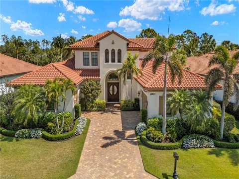 Marsala Tiburon Naples Homes for Sale: Welcome to this exquisitely designed estate home, where timeless architectural elegance seamlessly merges with spacious and comfortable living. Every facet of this residence showcases meticulous attention to detail, creating a harmonious blend of style and functionality. Nestled in a secluded and private location on over half an acre in the tranquil cul-de-sac of Marsala at Tiburon, this property is truly a sanctuary. The lushly landscaped grounds envelop a striking oversized pool, complete with a spa and cascading waterfalls, offering a serene outdoor oasis. The manicured lawn behind the pool area is fully fenced and backs onto the prestigious Greg Norman 36 hole championship golf course, ensuring both privacy and picturesque views. Step inside to discover an open floor plan adorned with elegant neutral tones and beautifully detailed ceilings. The main living areas boast stunning marble and wood floors, enhancing the sophisticated ambiance. The luxurious master suite, a guest suite, and a dedicated home office are conveniently located on the ground floor, while a small den and two additional guest suites—one featuring a private balcony—await you upstairs. For added convenience, a private one-bedroom, one-bath guest casita can serve as an exercise studio or a comfortable retreat for visitors. The expansive lanai features retractable screens, a cozy fireplace, and an outdoor kitchen, perfect for entertaining. Beautiful travertine flooring graces both the lanai and pool deck, creating an inviting atmosphere for gatherings. Light the fire bowls by the pool and relish in sunset soirées with family and friends. Additionally, this estate includes a spacious garage outfitted with a professional-grade car lift, mini - split AC, perfect for the automotive enthusiast or for providing extra storage space for your prized vehicles. Residents enjoy exclusive access to Ritz-Carlton hotel amenities, with options to join the Tiburon Golf Club. GOLF MEMBERSHIPS are IMMEDiATELY AVAILABLE, not required, concierge beach shuttle provides effortless access to the sugar-sand beaches of the Gulf, and the vibrant downtown Naples is just a short drive away. This home encapsulates the essence of luxurious living in a prime location, making it a true gem in the heart of Naples.