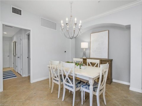 Casoria Treviso Bay Naples Condos for Sale: Private first-floor coach home located at the end of a cul-de-sac in Treviso Bay. This 3-bedroom, 2-bath residence features a split-bedroom floor plan and several interior updates. The kitchen includes white cabinetry, quartz countertops, a matching quartz backsplash, and stainless steel sink and faucet. The main living area opens to a screened lanai with views of the preserve and landscaped areas. The primary bedroom offers two walk-in closets with custom organizer systems and an updated bathroom with a glass shower enclosure. Additional features include luxury vinyl flooring in all bedrooms, wainscoting and crown molding in select areas, and neutral interior paint. Treviso Bay's resort-style amenities include a fitness center, spa, community pool, satellite pools, bocce, pickleball, tennis, clubhouse with dining, and the Arthur Hills–designed TPC golf course (seasonal access for non-members from May 1 to October 31). The community also offers mature landscaping and gated access. Conveniently located approximately 10–15 minutes from 5th Avenue South and 3rd Street South. Furniture is negotiable.
