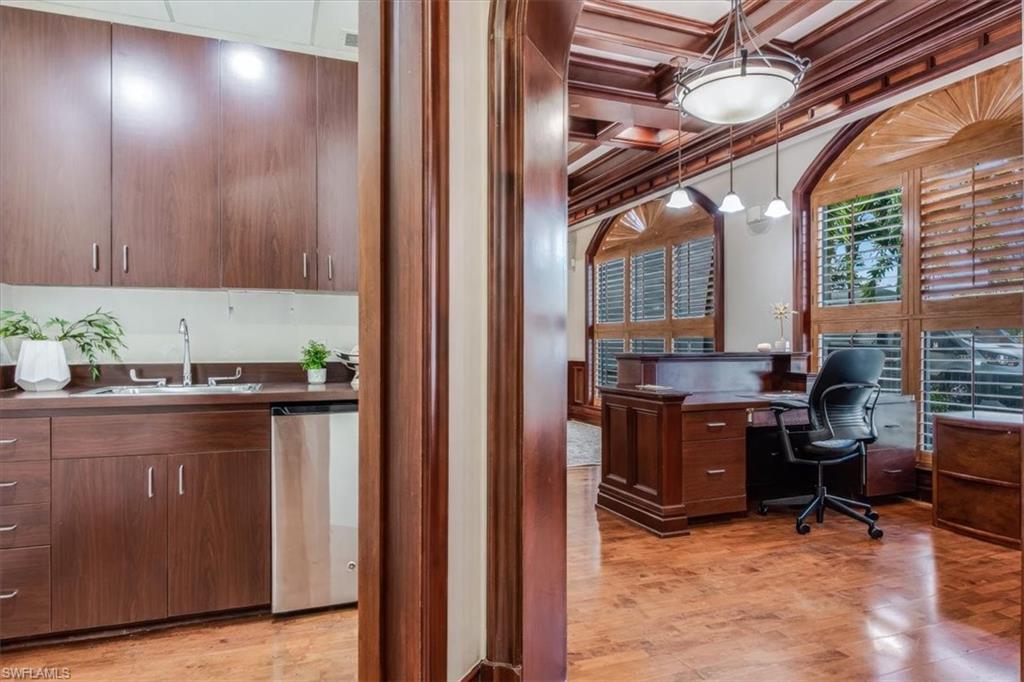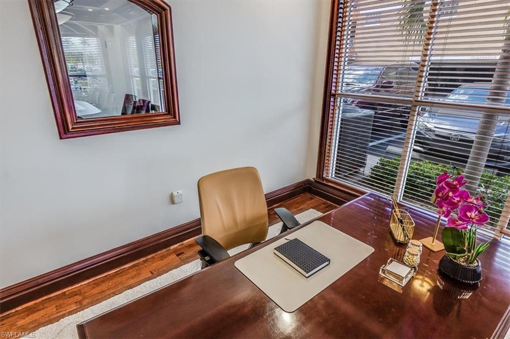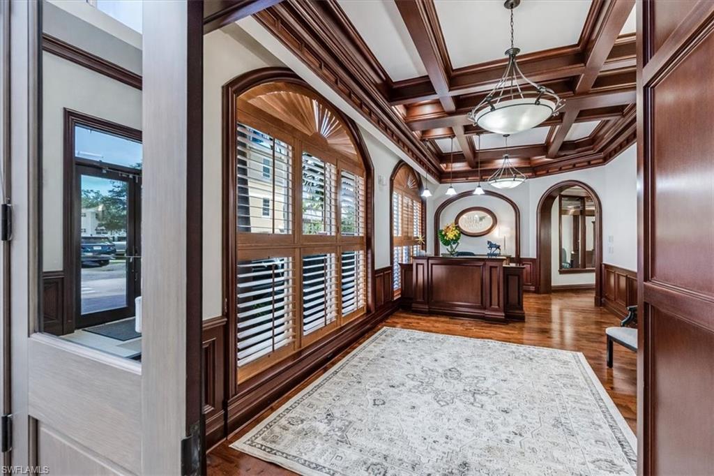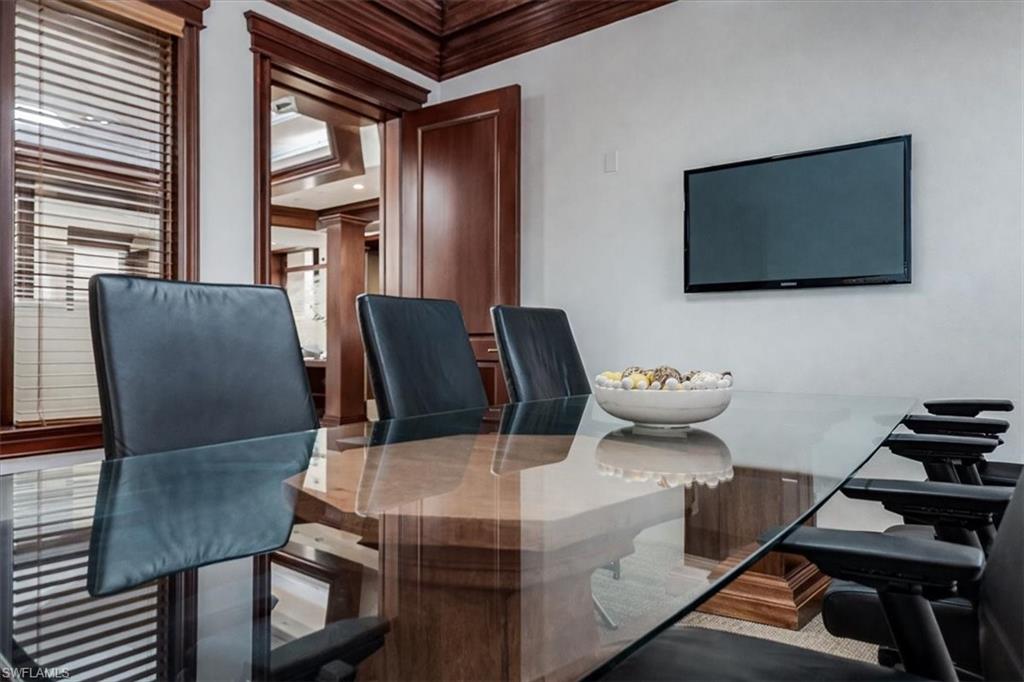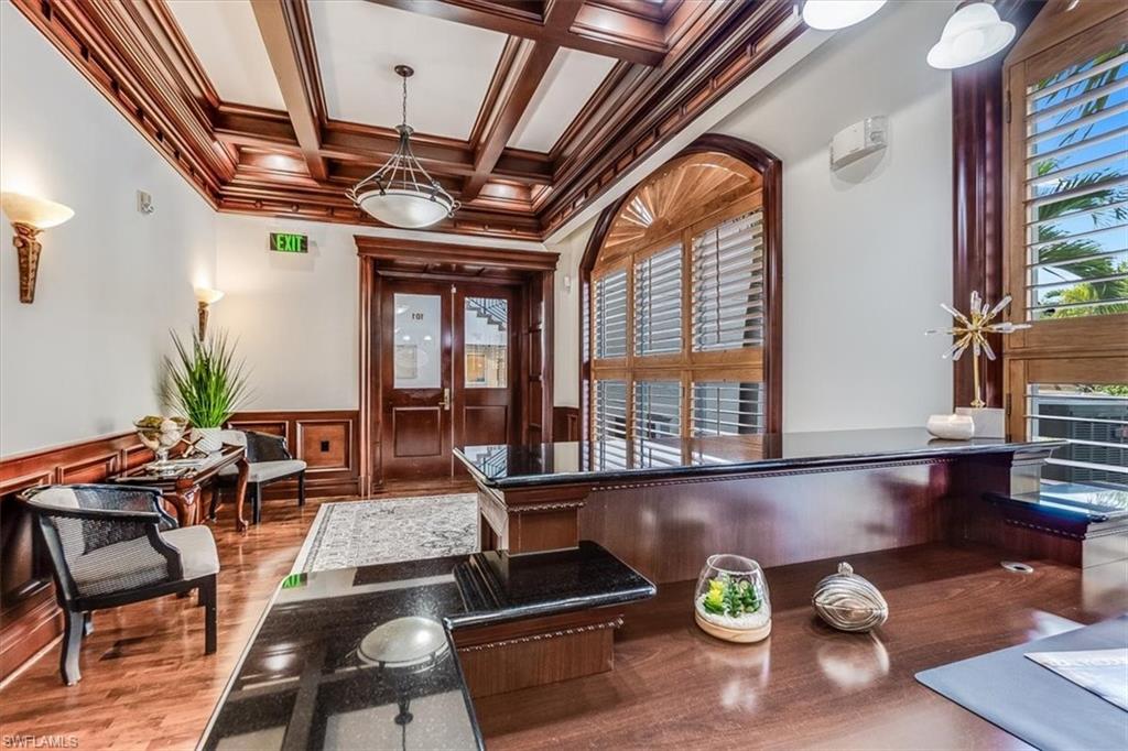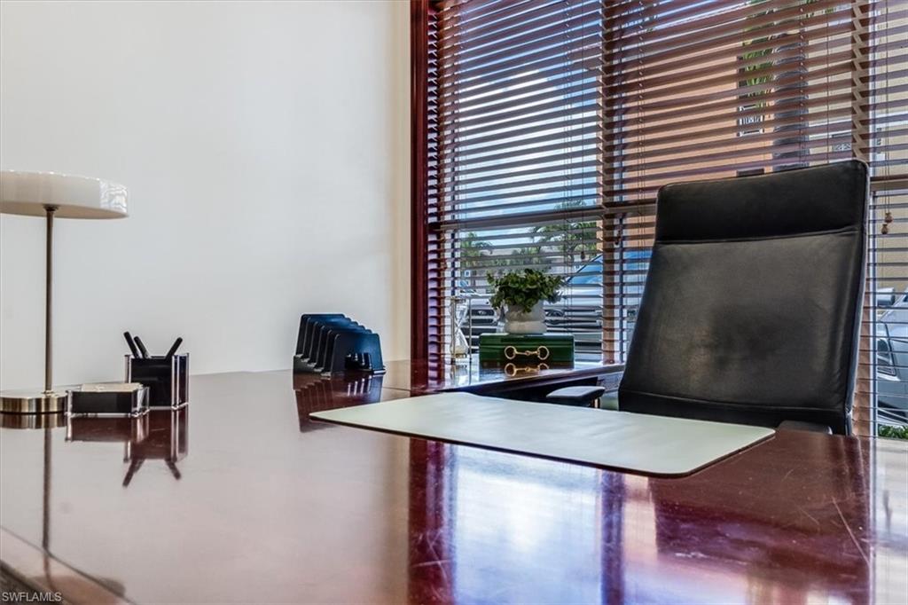 This sophisticated and character-rich executive office suite is a rare opportunity to acquire. Prestige address on US 41 near Downtown Naples. It features over 3000 square feet of thoughtfully designed layout including 10 large private offices, with two extra-large offices that can easily function as conference rooms or boardrooms, offering flexibility for meetings, presentations, and collaborative use. At the center of the suite is a flex collaboration lounge, ideal for team interaction, and overflow workspace. Additional amenities include a spacious and classy lobby, a kitchenette, and coffee bar, floor to ceiling windows, elegant crown molding and refined wood millwork, making it ideal for a distinguished and sophisticated workplace that reflects professionalism and success. This distinguished building has the perfect privacy/and exclusivity with a blend of well established tenants with little signage and a beautiful building lobby. A great fit for a family office, wealth management, boutique law/ CPA firms, Insurance companies, Business consultants. This space is also well-suited for an occupant who can utilize multiple private offices or Medical, health or Wellness without needing heavy daily traffic. There are 2 Deeded exclusive covered parking spaces and shared public parking for the building.