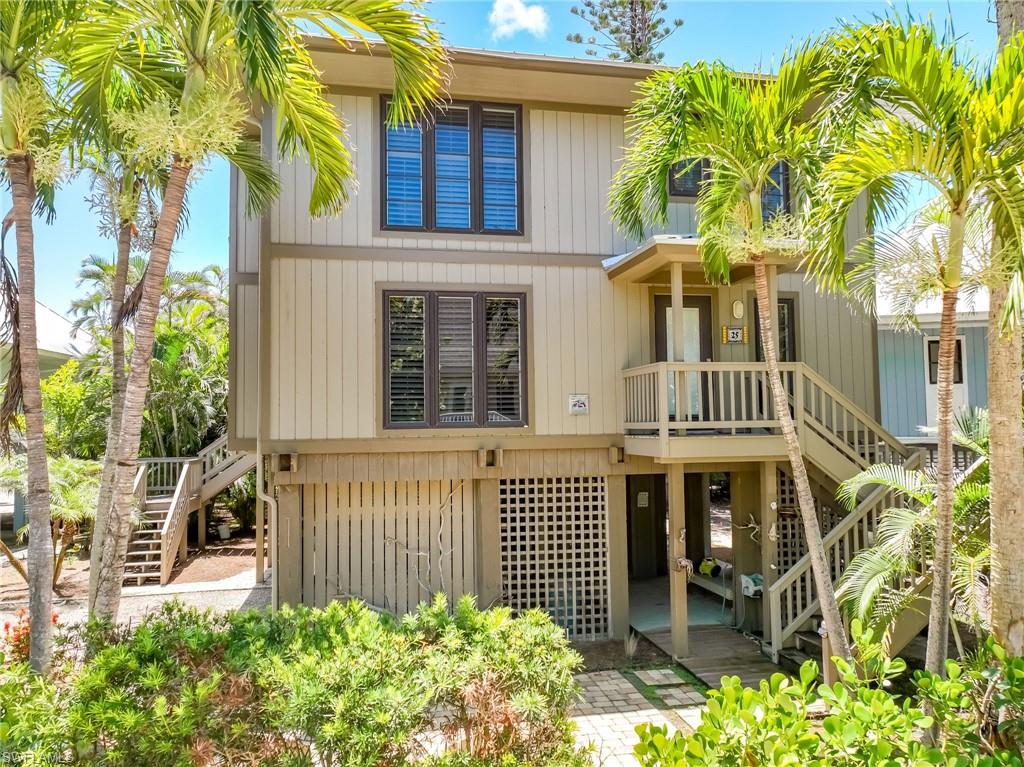 Captiva Island's Beach and Boating Lifestyle at an affordable price point! 25 Urchin Court is located in the quaint beach community of Sunset Captiva. This 2-bedroom, 2.5 bath with bonus loft/office nook offers the opportunity to own a home in one of Captiva's few neighborhoods with both private Gulf beach access and bayside DOCKAGE. Only 800 ft to the beach for world-class shelling and beautiful sandy coastline, or just under 1,000 ft to the community's dock slips. Inside, you'll find a bright and airy floor plan with comfortable living and dining areas perfect for relaxing and entertaining. The kitchen opens directly to the great room and screened lanai, offering a tranquil space to enjoy island breezes. Upstairs, two spacious bedrooms each have an en-suite bath, and access to a large private sun deck ideal for morning coffee or evening stargazing. The home is elevated and surrounded by lush tropical vegetation, with space underneath for storage and all your island toys. Additionally, it has been recently upgraded with a new water heater and a standing-seam metal roof installed in 2023. Sunset Captiva offers resort-style amenities including a heated pool, tennis and pickleball courts, BBQ grills, and community docks with water and electric—perfect after a day boating in the Gulf or Pine Island Sound. Just around the corner, you arrive in Captiva Village, with restaurants, shops, music, and more. Whether you're seeking a serene escape with a place to dock a boat, a quiet beach vacation home, or an income-generating rental, this charming home places you in the heart of it all with the best of Captiva's coastal lifestyle just outside your door.