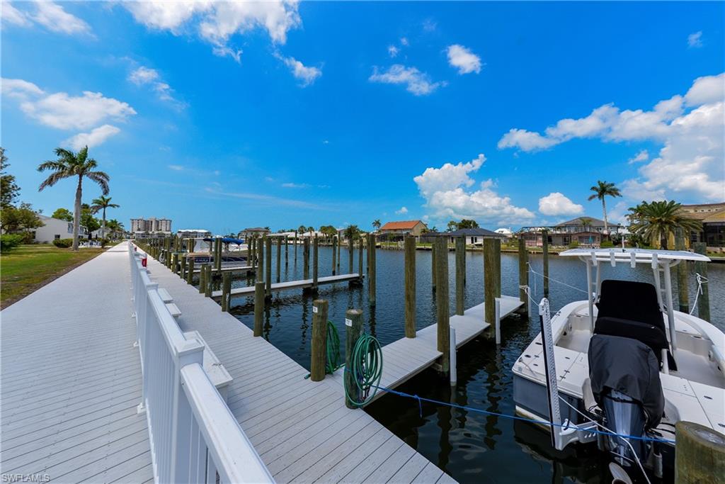 Direct Gulf Access from this Fully Upgraded 2 Bedroom, 2 1/2 Bath Townhome in the Premier Boating Community of Boardwalk Caper! Boat Slip #88 included! Just steps out your back door to the Heated Pool, Spa, and the fully renovated Boardwalk. Deep Direct Boating access & Just minutes to the Gulf. Lovely Views of the Pool, Waterway, Docks, and Beautiful SW FL Sunsets! Amenities include Fishing, Boating, 4 heated pools, Spa, Pickleball, Tennis, Basketball & Shuffleboard. All assessments have been paid in full. Don't miss this Boater's Dream to own in Ft Myers Beach! Features include: Wood plank look Tile Flooring throughout downstairs, New LVP flooring in bedrooms, New Kitchen with white cabinetry, Granite counters, Tile backsplash, Stainless appliances, Newer HVAC system with UV lights, New Tankless water heater, Impact-resistant Windows & Sliders throughout, Plantation shutters in the bedrooms, Fully upgraded bathrooms with beautiful tile showers and frameless glass enclosures, Large Screened & tiled Lanai with windows for year-round enjoyment, and a lovely Privacy Fenced front entry Courtyard Patio with pavers and a large attached storage closet. Floor plan features an open kitchen with a lovely granite breakfast bar leading to the dining and living area. There is a half bath for guests off the foyer, an inside laundry room with cabinets, and a large storage closet downstairs. The living area opens through impact sliding doors to the large screened Lanai with views to the Pool and Waterway. Upstairs features 2 master suites with fully upgraded en-suite bathrooms and large closets. Call today for your private showing! Don't Miss this Opportunity to Own this Lovely Townhome with Deep-Water Direct Gulf Access in Beautiful Fort Myers Beach!