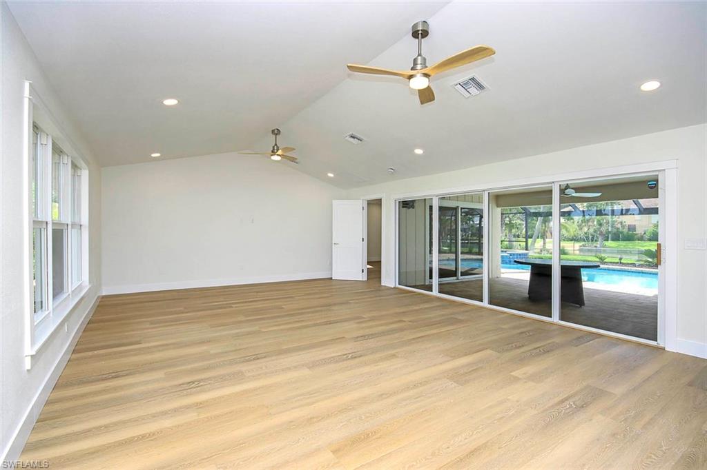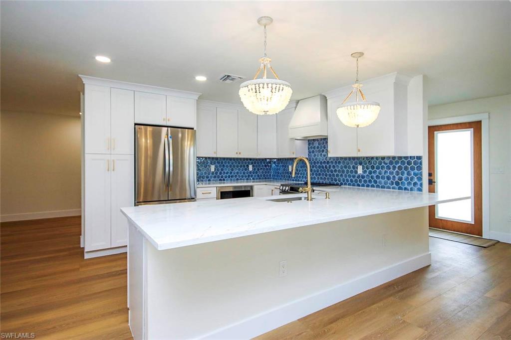 The ultimate Sanibel retreat is ready for you! Located in the sought after neighborhood of Shell Harbor, this luxurious and spacious, easy living home is totally remodeled with a new stone coated, steel roof in 2021. This 3 bedroom, 2 and 1/2 bath, home features all impact windows and doors, new kitchen and baths with quartz counters and beautiful tile showers throughout. Versatile extra living space off the kitchen/living room could be a den, office, exercise room with extra space for the grandchildren. Easy maintenance, LVP flooring throughout and a laundry room with two, full size stack washers and dryers. Designed for entertaining, the wall of living room sliders provides a stunning view of the pool, spa, professionally landscaped lawn and waterway. New dock with 14,000# lift, new landscaping and irrigation. Kings Crown Dr. is located on the sought after east end of Sanibel Island, just a quick walk or bike ride to the beach along with deeded beach access with parking at the end of Lindgren. Easy access on and off the island and a close proximity to restaurants, shopping, shelling and water sports. This is the perfect home to enjoy all that Sanibel has to offer!