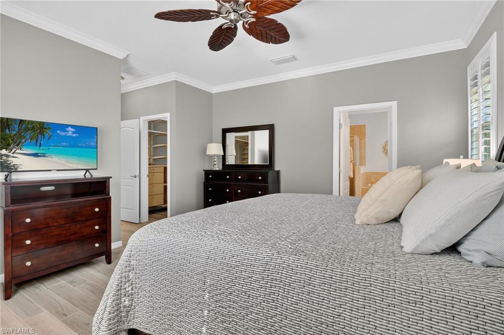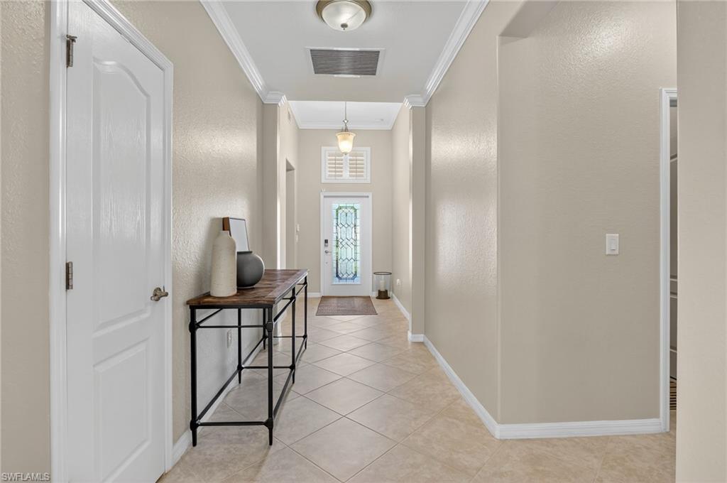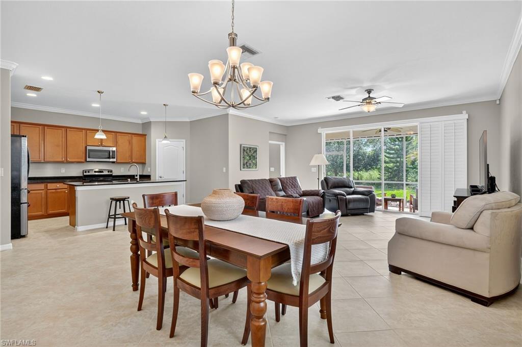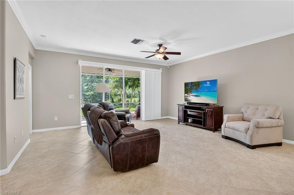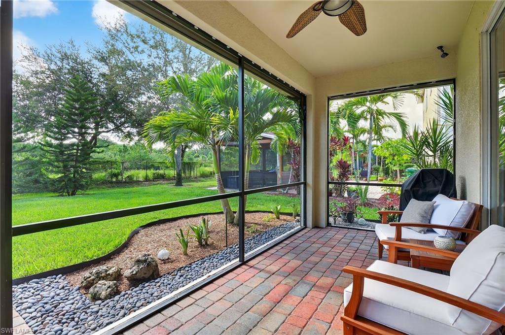 Greatly Improved Price! Excellent Value in the area. $88,000 in Upgrades and better than the builder's new basic home, compare! This Trevi model is located on a wide freshwater canal. As you enter, you will notice electric rolldown hurricane shutters on the front door and in the lanai! Crown moldings in most areas. Vivint home security system with package protection and cameras with an active deterrance system! Home automation lighting. A very popular, 4 bedroom, 3 bath home has a greatroom, and a split bedroom plan. Gourmet kitchen with granite island and newer high end stainless appliances. Upgraded washer & dryer in utility room! Nice tile floors throughout the home, beautiful Bahama plantation shutters on all windows - making them elegant! The master suite is beautiful with 2 walk-in closets, double sinks, a soaking tub, and a shower. Other bedrooms have extra features, like a murphy bed, office set-up, and TVs. One bedroom is en suite with a bathroom for guests! Custom built-in cabinets in all closets, including the pantry. Upgraded ceiling fans and light fixtures. Upgraded garage has epoxy floor and 3 overhead storage racks! Screened lanai is great to enjoy coffee/tea watching sunrise, and cool drinks in the evening! 1-YEAR AHS WARRANTY IS INCLUDED for your peace of mind. See floor plan and detailed Upgrade List in photos... APPROVED FOR HOMETOWN HERO, FHA and VA LOANS.. Please view virtual tour - click on link, click music icon, click 1st photo on the bottom left, then click slide show - you will see beautiful home and 3-D photos. Seller will remove office cabinets, if you don't need them... Orange Blossom Ranch is a lovely gated community with 2 resort style pools, 2 hot tubs/spas, a Splash pad, kids play area, excercise room, 2 tennis & pickleball courts, 2 basketball courts, beach volly ball court, 2 bocce courts, fishing pier, and a community Room with a nice kitchen - for parties... Minutes to shopping, public golf course, schools, Ava Marie University, and nature preserves... Enjoy good life in Beautiful Naples, FL...