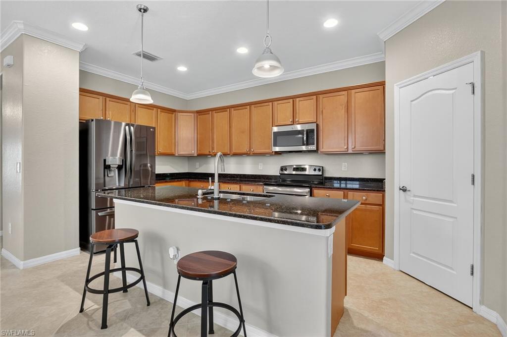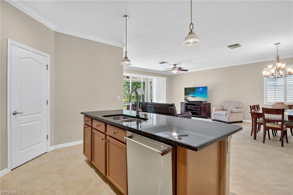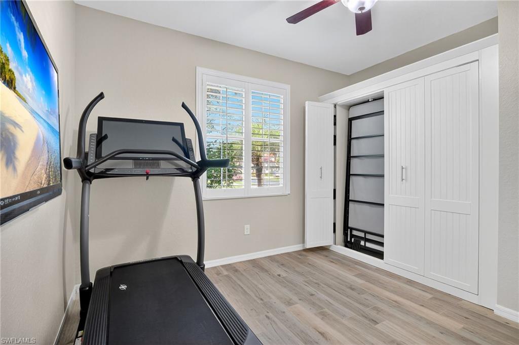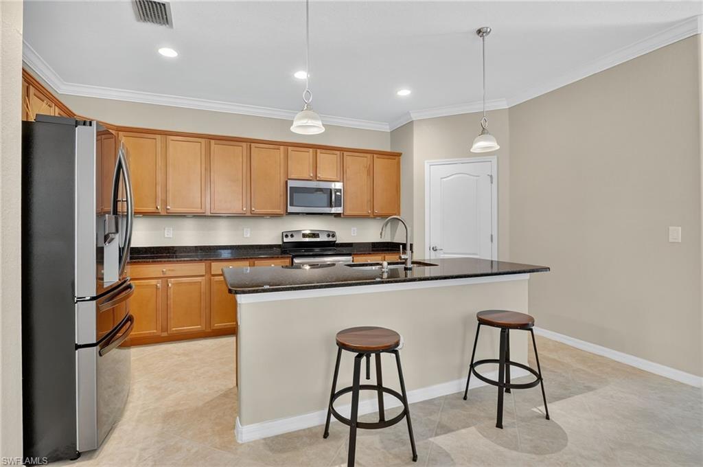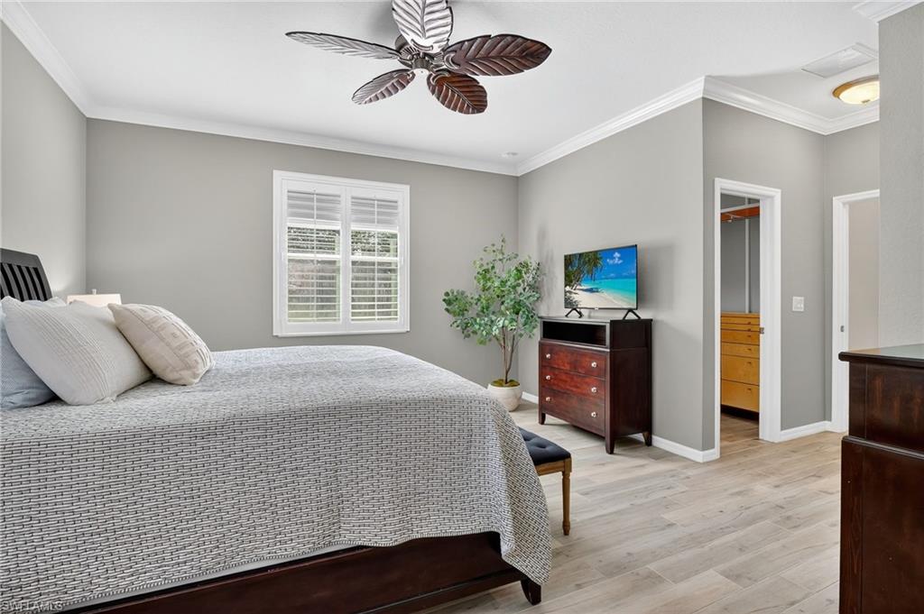 Greatly Improved Price! Excellent Value in the area. $88,000 in Upgrades and better than the builder's new basic home, compare! This Trevi model is located on a wide freshwater canal. As you enter, you will notice electric rolldown hurricane shutters on the front door and in the lanai! Crown moldings in most areas. Vivint home security system with package protection and cameras with an active deterrance system! Home automation lighting. A very popular, 4 bedroom, 3 bath home has a greatroom, and a split bedroom plan. Gourmet kitchen with granite island and newer high end stainless appliances. Upgraded washer & dryer in utility room! Nice tile floors throughout the home, beautiful Bahama plantation shutters on all windows - making them elegant! The master suite is beautiful with 2 walk-in closets, double sinks, a soaking tub, and a shower. Other bedrooms have extra features, like a murphy bed, office set-up, and TVs. One bedroom is en suite with a bathroom for guests! Custom built-in cabinets in all closets, including the pantry. Upgraded ceiling fans and light fixtures. Upgraded garage has epoxy floor and 3 overhead storage racks! Screened lanai is great to enjoy coffee/tea watching sunrise, and cool drinks in the evening! 1-YEAR AHS WARRANTY IS INCLUDED for your peace of mind. See floor plan and detailed Upgrade List in photos... APPROVED FOR HOMETOWN HERO, FHA and VA LOANS.. Please view virtual tour - click on link, click music icon, click 1st photo on the bottom left, then click slide show - you will see beautiful home and 3-D photos. Seller will remove office cabinets, if you don't need them... Orange Blossom Ranch is a lovely gated community with 2 resort style pools, 2 hot tubs/spas, a Splash pad, kids play area, excercise room, 2 tennis & pickleball courts, 2 basketball courts, beach volly ball court, 2 bocce courts, fishing pier, and a community Room with a nice kitchen - for parties... Minutes to shopping, public golf course, schools, Ava Marie University, and nature preserves... Enjoy good life in Beautiful Naples, FL...