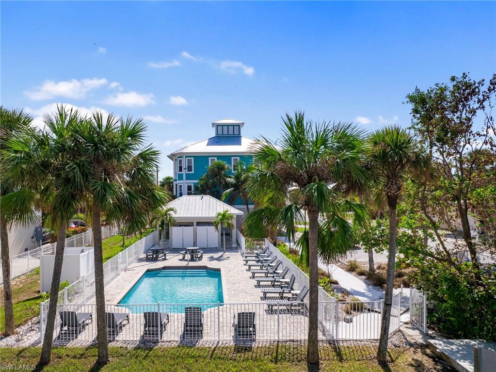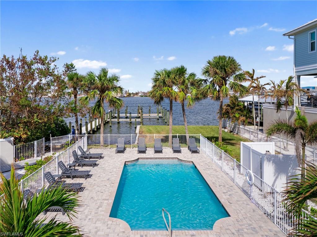 PRICED to SELL! BELOW PRODUCTION VALUE! Storm-tested, income-producing luxury vacation home in a BAYFRONT community ideally located on Fort Myers Beach’s highly sought-after NORTH END! This elevated 4 bed, 3 bath near beach retreat includes a private dock with dedicated slip (or rental potential if not used), and shares a heated pool and cabana with just three other homes. Built to exceed modern hurricane code and fully updated in 2023 with $200K+ in improvements, the home offers open-concept living, gourmet kitchen with high-end appliances, turnkey furnishings, and beautiful bay views. Proven rental income with opportunity for more with bookings in place. Ideal for a second home, 1031 exchange, or portfolio investment—this is one of the best-priced bayfront homes on the island. What are you waiting for? Start enjoying the ICONIC VIEWS of Matanzas Pass & the world famous Shrimp boats while experiencing the very best of the Fort Myers Beach lifestyle here! Extremely PEDESTRIAN FRIENDLY location in the heart of all the action just moments to Margaritaville, Times Square & the Pier while directly across the street from the future Neptune Inn redevelopment & right around the corner from Diamondhead resort & the annual Sandcastle Championship & The Whale Restaurant plus bike & golf cart rental right around the corner makes this a very lucrative investment property especially with WEEKLY rentals! Rare to find over 1,700 SqFt of patio space to immerse yourself in all of the incredible views from Sunrise to Sunset & enjoy the cool Florida breeze! Elevated construction exceeding code with concrete block through the 1st living floor, all impact windows & doors plus metal roof will stand up to the worst storms while providing great peace of mind. Oversized 2 car garage with great lower level storage space with plenty of room for all of your beach gear, bikes & kayaks which you can launch from the dock. Close proximity to the bridge for convenient access on & off the island minimizes time in traffic greatly! Don’t miss your chance to be a part of the renaissance of Fort Myers Beach with plenty of restaurants & entertainment options available in walking distance!