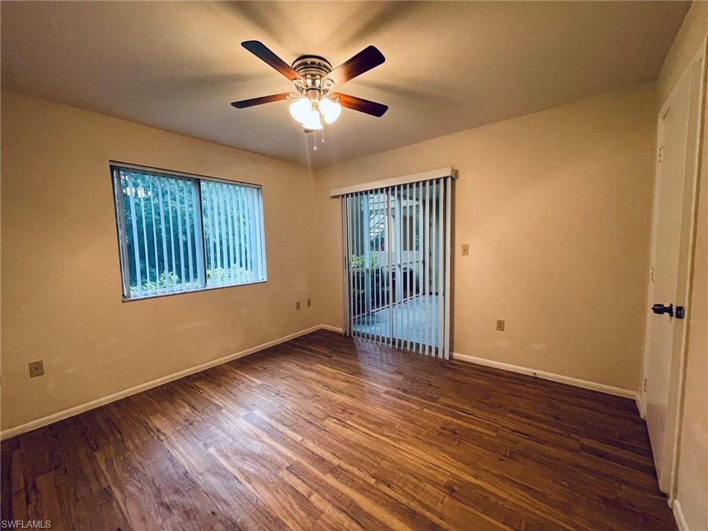 Welcome to this charming 1-bedroom, 1-bath first-floor condo in the desirable community of The Greens at Fountain Lakes! Step inside to find updated flooring throughout and an open-concept layout that flows seamlessly from the living area to the kitchen. Enjoy peaceful mornings and relaxing evenings on the spacious screened lanai, which offers private access from both the main living area and the bedroom suite, creating a true indoor-outdoor retreat. Fountain Lakes offers resort-style amenities with something for everyone — including a 9-hole executive golf course (no membership required!), community pools, pickleball, tennis, bocce, shuffleboard, a fitness center, billiards room, and a playground. Located in one of the most convenient areas in Southwest Florida, you're just minutes from Coconut Point Mall, Miramar Outlets, Bonita Beach, Lovers Key State Park, and RSW International Airport.
