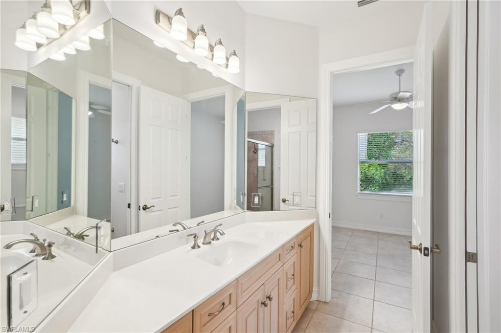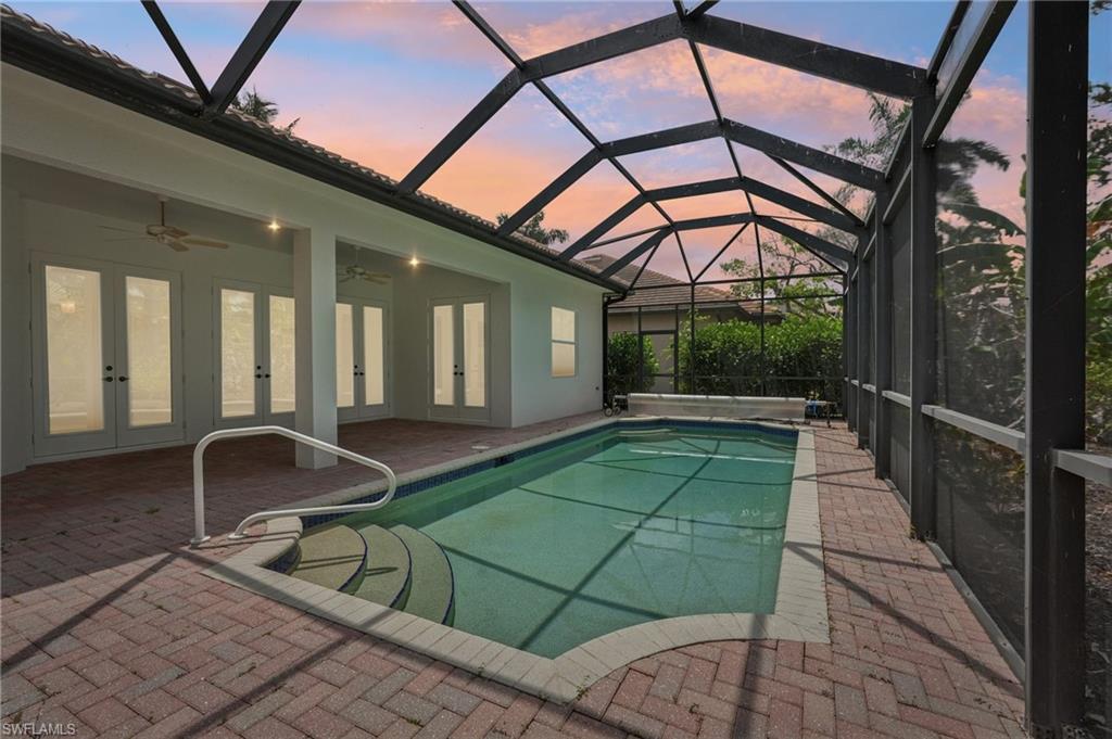 Elegant 3-bedroom, 2.5-bathroom + den pool home in Horse Creek Estates, one of North Naples’ most desirable communities. Mortgage savings may be available for buyers of this listing. This impeccably maintained Naples home for sale has been professionally painted inside and out and offers a modern, open-concept layout with soaring ceilings, a bright and airy feel, and a seamless flow ideal for entertaining or everyday living. The north rear exposure allows soft natural light to pour through a full wall of French doors, enhancing the spacious living areas with warmth and charm. The kitchen features stainless steel appliances, a central island, breakfast bar, and cozy dining nook, while the primary suite includes private pool access, dual vanities, a soaking tub, and a walk-in shower. The split-bedroom floor plan offers privacy, with two additional bedrooms sharing a Jack-and-Jill bathroom designed for efficiency, plus a versatile den ideal for a home office or guest space. Located in a quiet and beautifully maintained Naples neighborhood, this North Naples pool home also includes a 2-car garage with built-in cabinetry and a utility sink. The community permits owners to lease their property up to three times per year, providing valuable flexibility. Conveniently located just minutes from Vanderbilt Beach, Wiggins Pass, and Mercato’s shopping, dining, and entertainment, with quick access to I-75 and Downtown Naples, this property is a perfect blend of luxury, comfort, and location in Southwest Florida.