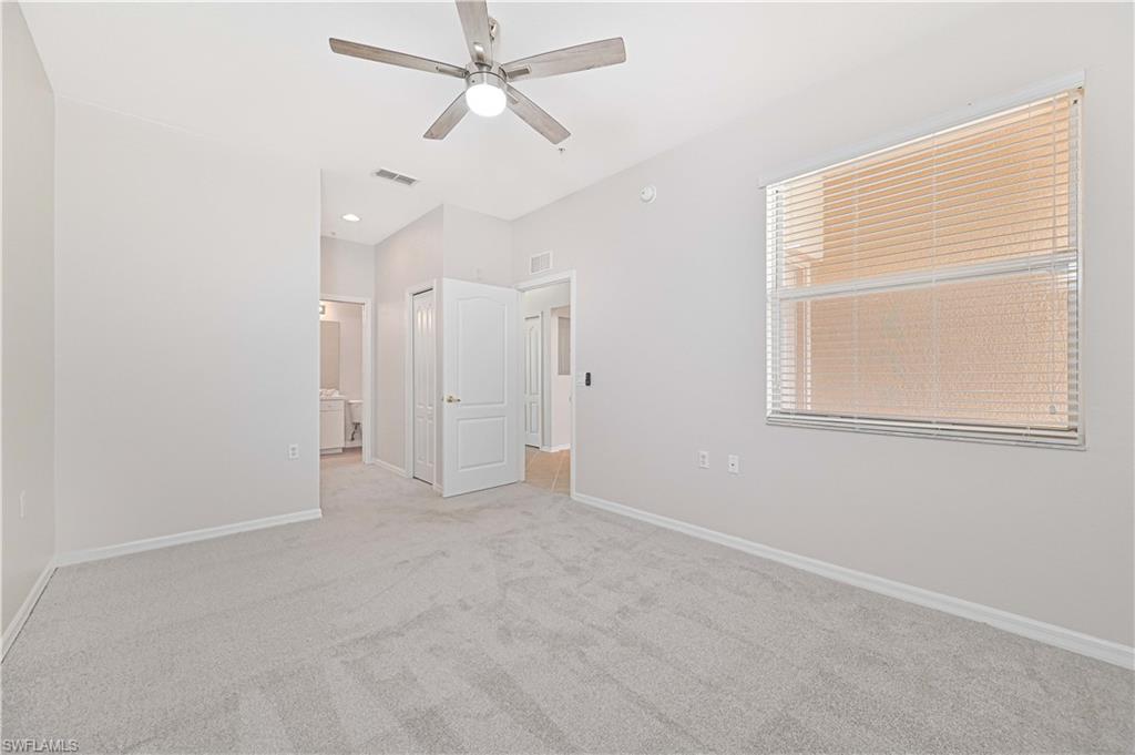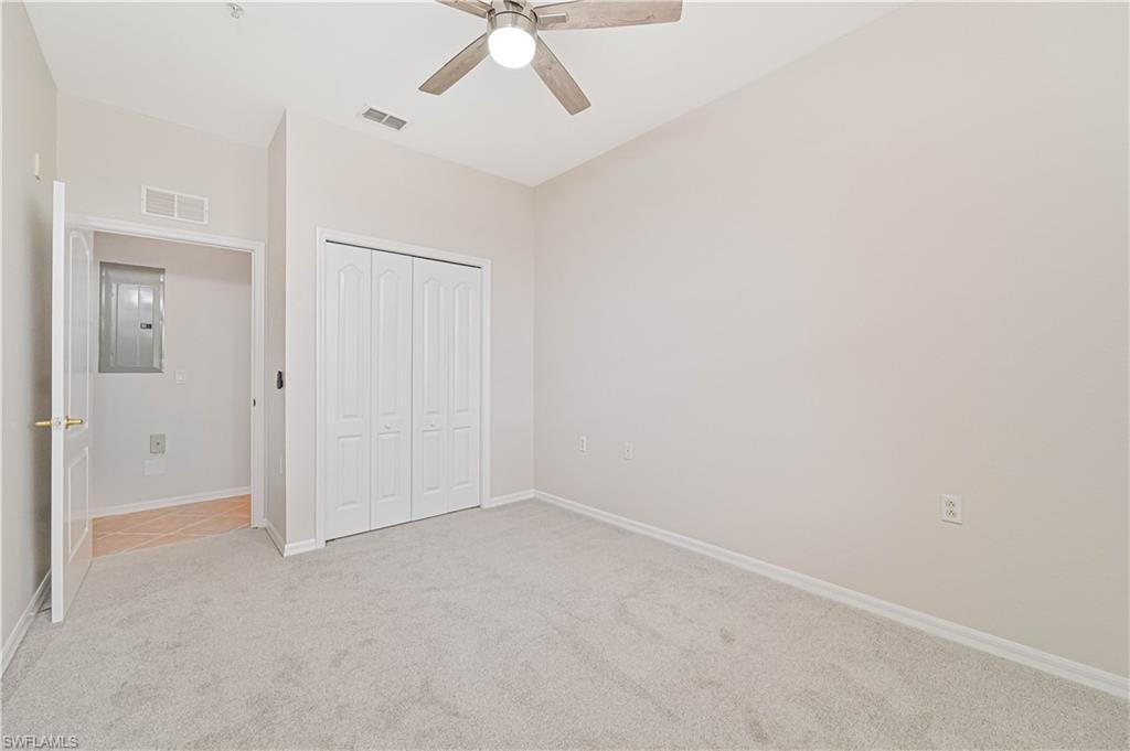 Updated move-in ready Penthouse condo in the vibrant center of Estero is the perfect vacation home or year-round residence. This freshly painted, stylish two-bedroom, two-bathroom condo on the top floor offers an ideal blend of comfort and convenience. Magnificent views from the screened-in balcony. Diagonal tiled flooring throughout except for the Bedrooms which has brand new carpet. New water heater and kitchen sink with modern faucet. Hurricane impact windows and doors. Private storage just steps from your front door. Designated covered parking spot and ample guest parking nearby. The building includes an elevator for easy access and was recently freshly painted. The roof was replaced in 2024. Association fees cover cable, water, sewer, trash, lawn and landscaping maintenance, irrigation, exterior building insurance and maintenance, professional management, and fully funded reserves—with no CDD fees. Prime location! Osprey Cove is ideally situated between Fort Myers and Naples—just minutes from SWFL International Airport, Coconut Point, FGCU, and the Gulf’s best beaches. You’re within walking distance to Walmart, Aldi, Sprouts, and Starbucks, and a short drive from Publix, Costco, Gulf Coast Town Center, and a variety of top restaurants and shopping destinations. Don’t miss this opportunity to own a well-appointed condo in one of Southwest Florida’s most desirable locations!