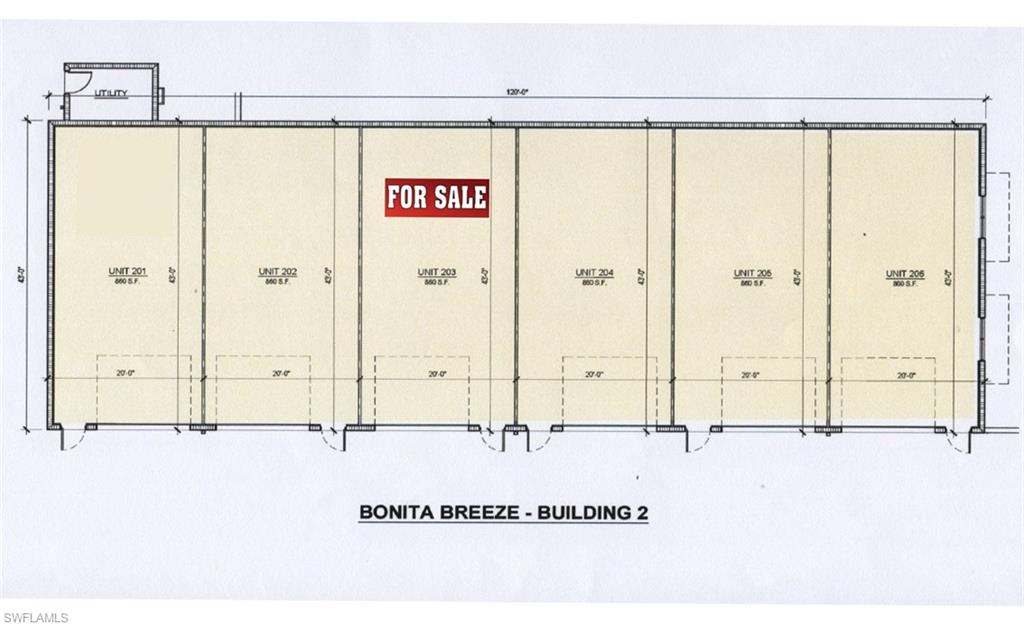 Discover Bonita Breeze Auto Condos, an unparalleled luxury storage experience designed for the discerning collector. Located on Bonita Beach Rd less than 1 mile from the beachfront, Complex of meticulously crafted buildings house 25 exclusive, climate-controlled commercial condominium units, perfect for safeguarding your prized cars, boats, RVs, or other personal treasures. All owners have 24 hour gate access. Presently Unit 203 is available (20'W x 43'L-860 sqft) with a 12' x 12' commercial hurricane rated garage door, providing ample room for a variety of vehicles and collectibles. These premium units offer a suite of top-tier amenities : epoxy finished flecked flooring, high-speed internet availability , cable TV compatibility, insulated walls, and a versatile open space concept. Unit 203 features a full bathroom and a mezzanine loft space, ensuring the utmost convenience and luxury transforming your space into the ultimate man cave sanctum, ideal for hosting game views, cruise-in gatherings, and all other social activities that you may dream up. Indulge in the ultimate sanctuary for your valuable assets, where security, comfort, and sophistication meet. Peace of Mind knowing your prized autos are protected is worthwhile as the complex did not suffer any water or wind damage during historical Hurricane Ian. ("X" Flood Zone)