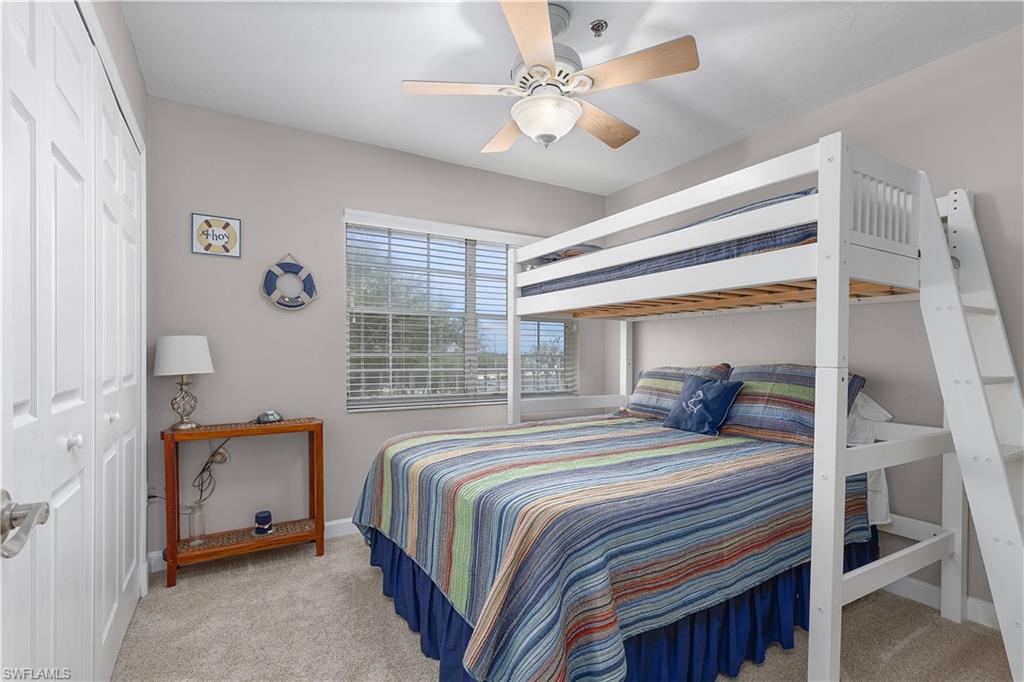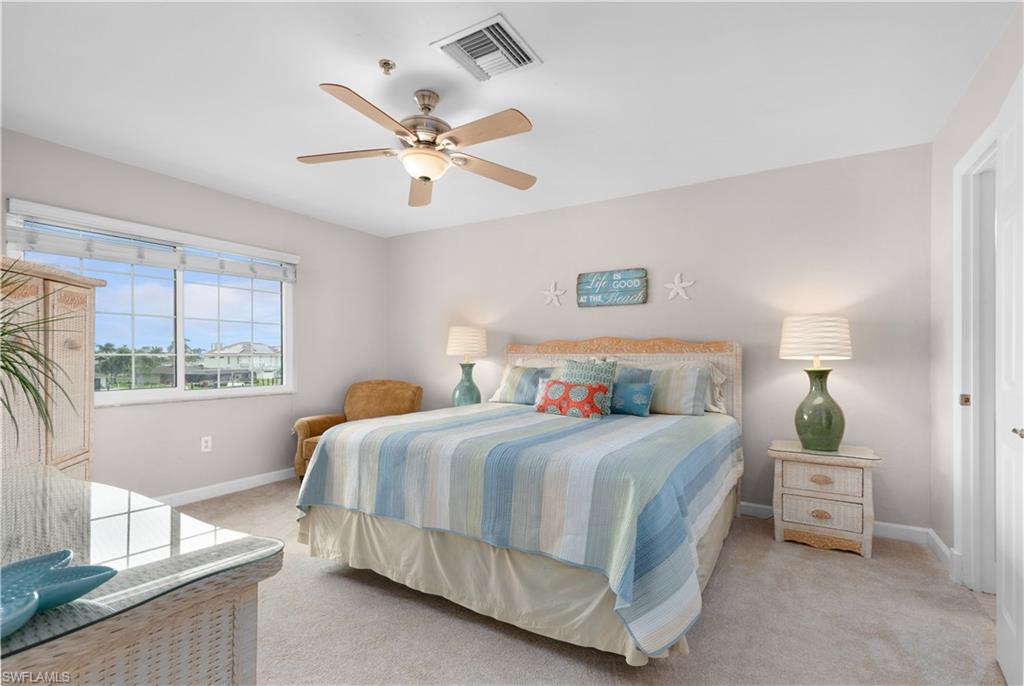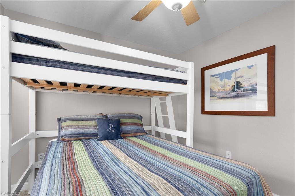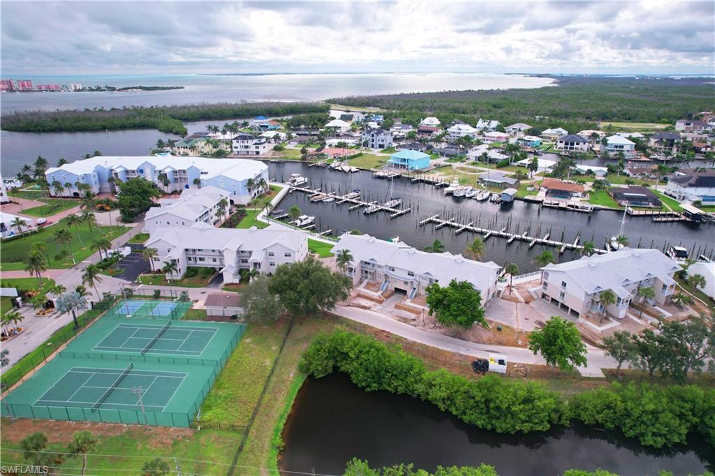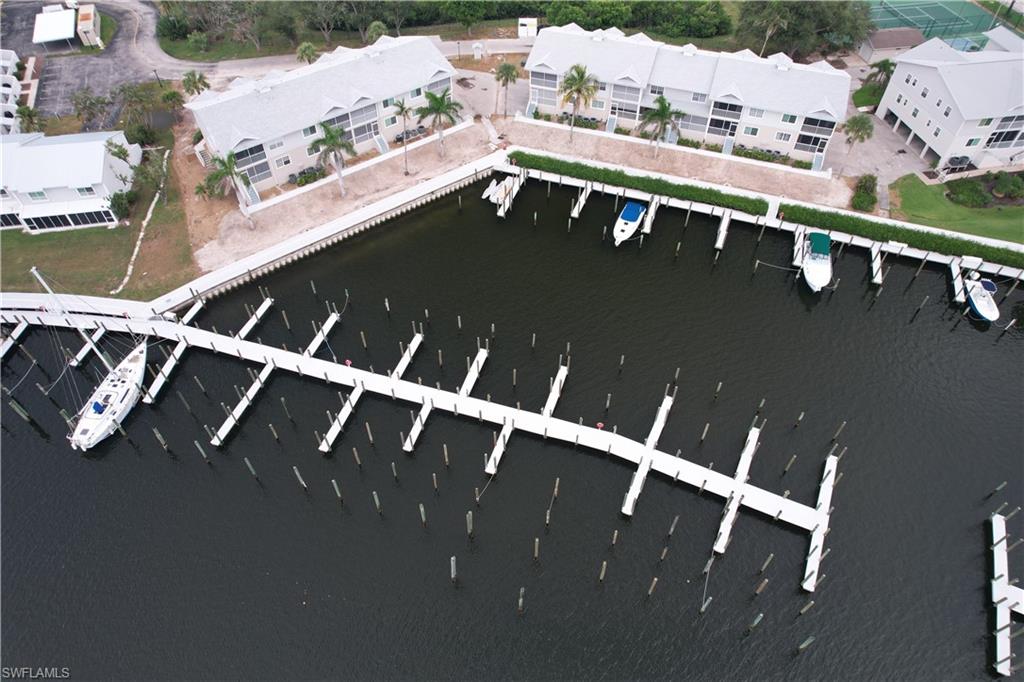 This is a boater's paradise! Unwind on your screened balcony/lanai, gazing over the marina and your boat in its DEEDED SLIP just below. A quick boat ride takes you to the Gulf and all the attractions of Fort Myers, Sanibel, Pine Island, and Cape Coral – endless exploration awaits! Or, bike or stroll just over a mile to Fort Myers Beach, Margaritaville, shops, and a wide array of restaurants. Pinchers restaurant is conveniently located next door. As an END UNIT, you'll enjoy abundant natural light from an extra slider and Juliet balcony. The top-floor location enhances this bright space with vaulted ceilings and Gulf breezes. Combined with the coastal decor, it creates an immediate vacation ambiance. The open and airy layout is perfect for entertaining. This fully turn key 3-bedroom, 2-full-bath unit features a beautiful kitchen with a snack bar and center island, open to the dining and family room with stunning views. The primary suite boasts a private bath with a large vanity, tiled shower with glass surround, and a spacious walk-in closet. A split bedroom design offers two additional bedrooms, a coastal bathroom, and in-unit laundry. Boardwalk Caper provides a wealth of community amenities, such as several swimming pools, tennis courts, shuffleboard, basketball/pickleball courts, and a marina. You'll also appreciate the private locked storage unit, deeded parking spot beneath the unit, available guest parking, and a community locked storage area in the adjacent building for extras like bikes. Tour this lovely condo and discover the joys of Florida living! Enjoy boating, swimming, nearby beaches, and relaxation!