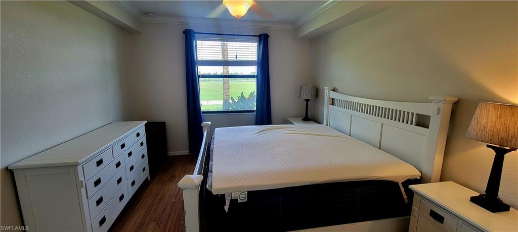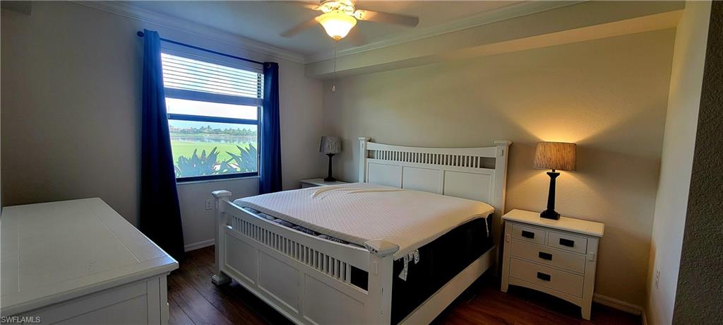 GOLF MEMBERSHIP INCLUDED!! LOWEST priced unit at Bonita National Golf and Country Club. Country club living at its finest, Gordon Lewis golf course, professional tennis courts, pickle ball courts being built now, 3 restaurants, main pool and 3 satellite pools, large gym and fitness room plus a full-service spa. This condo comes with the golf and social membership. The views from the Lania are breathtaking of the sunsets, and views 1 and 18 holes plus the view of the amazing country club building. Just a few steps out your back door to the satellite pool and BBQ area for your convenience. This is a 2 bed 2 bath unit, freshly painted a soft grey. 8ft ceilings, crown molding, beautiful tile floors throughout. Wonderful place to call home or investment property.
