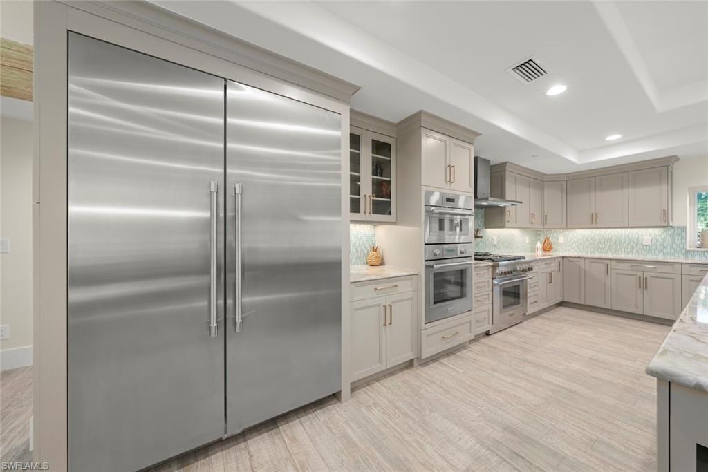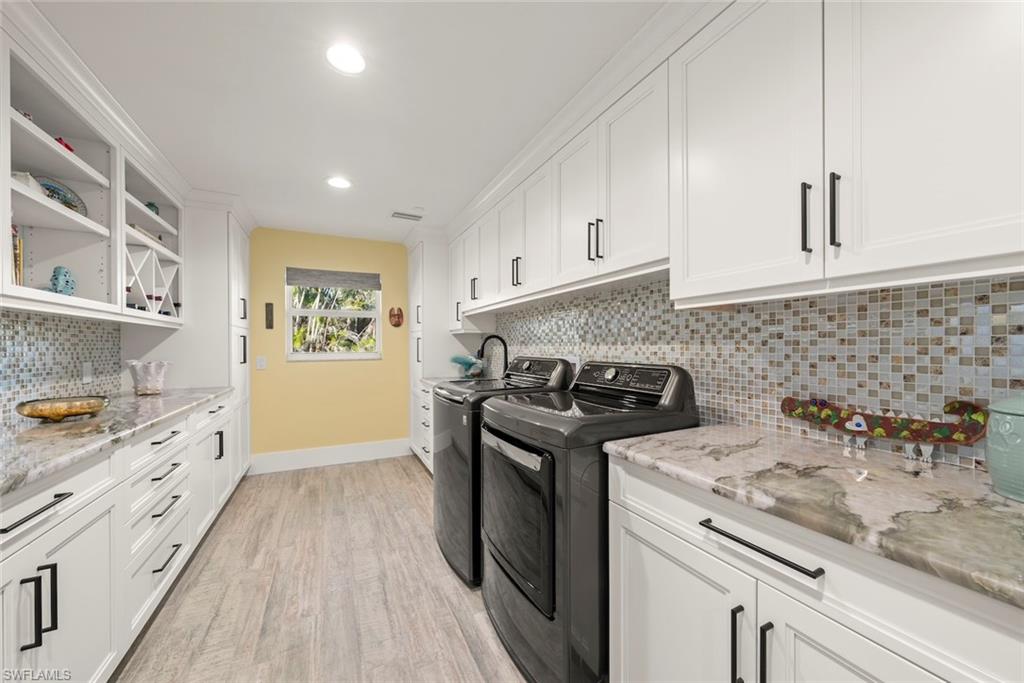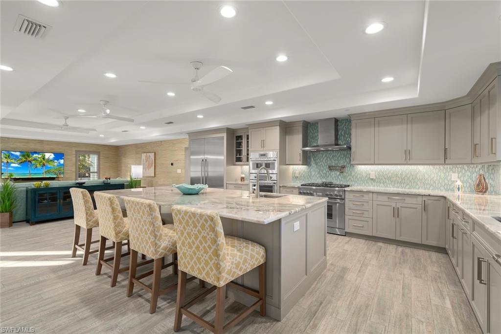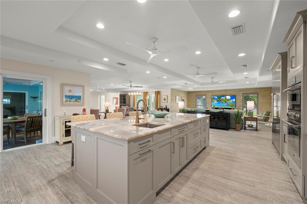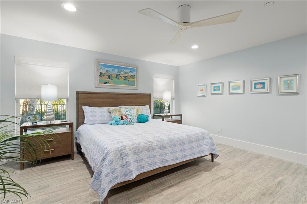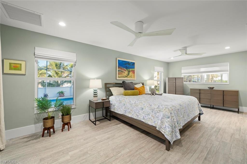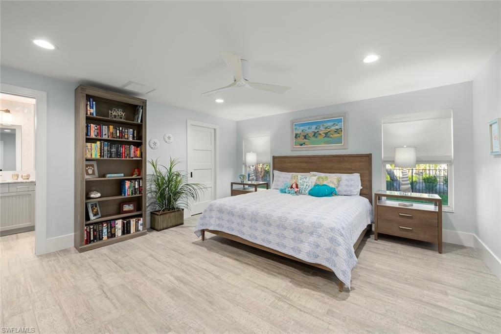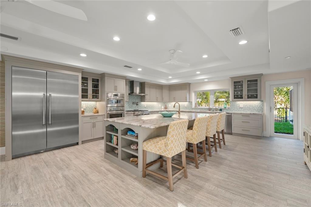 An absolutely stunning remodel located steps to deeded beach access in the coveted neighborhood of Château Sur Mer. Resting on just under a half an acre lies this palatial concrete home with two living areas, an epicurean kitchen featuring a Thermador refrigeration wall, Thermador built-in microwave and Thermador 6-burner gas cooktop and hood along with a Thermador Dishwasher. The stunning level 5 Quartzite countertops are complemented by a vitreous glass backsplash and all custom cabinetry. The remodel and expansion of this home during the current owners ownership allowed for a split bedroom set up with ample privacy for owners and guests alike. In the primary suite, you will find expert craftsmanship in the bath and custom closet built-ins.The high level finishes are consistent throughout this residence. From the custom window treatments to the programmable Lutron lighting system, you have it all! Other improvements include new interlocking pavers in the pool area, a resurfaced pool which has now been modified to saltwater. In addition, a portion of the yard is fenced, a new seamless metal roof was installed in 2017, epoxy garage floor finish, custom shelving and storage racks placed in garage, all windows and doors are impact glass, new code garage door, drop down screens on the lanai and brand new landscaping. The deeded beach access is located 385 feet to the east of this property. What a beauty!