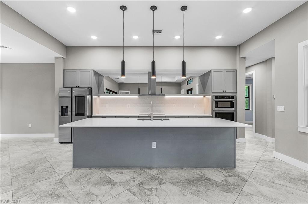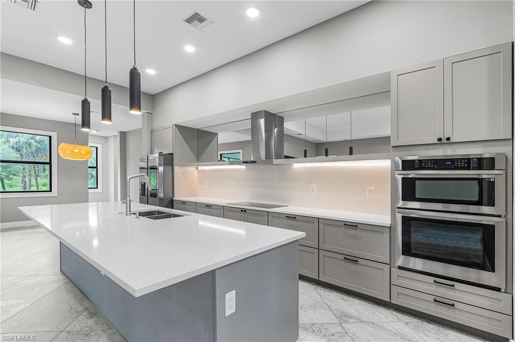 Experience contemporary luxury in this newly built 2024 European-designed home on 1.59 private acres in Golden Gate Estates, free from HOA restrictions and enjoying desirable southern exposure. This energy-efficient 4-bedroom, 3-bath residence features hurricane-impact windows, soaring 11–12 ft ceilings, a sleek chef’s kitchen with oversized island, spa-style baths, a split floor plan with private guest suite, and a 300-ft setback for exceptional seclusion. Relax on the screened lanai surrounded by pine trees, songbirds, and stunning sunsets. Located on a quiet neighborhood with ample parking for boats, trailers, or extra vehicles. Just minutes from the Shoppes at Orange Blossom, CREW Bird Rookery Trail, and the new 150-acre Big Corkscrew Regional Park with playground, aquatic complex, sports fields, pickleball, and tennis. Only 30 minutes to the beach.