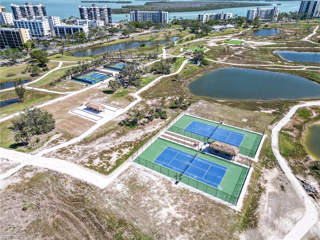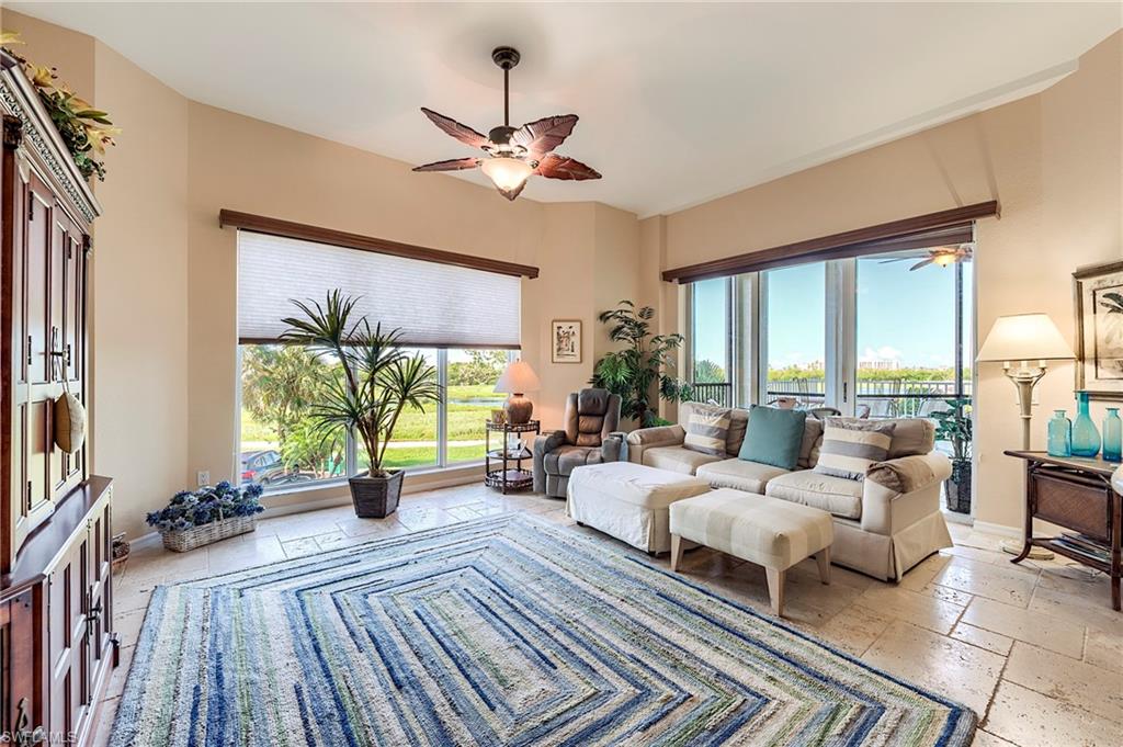 Enjoy serene bay and lake views from this spacious corner residence at Waterside. This second-level 3-bedroom, 2-bath home features 11-foot ceilings and an extended terrace for outdoor living, perfect for sunsets and watching the activity on Estero Bay. This condo is on the same level as the social room, gym and guest suites so a lot of your amenities are just steps away! The residence offers travertine flooring, upgraded carpet, granite countertops, stainless steel appliances, California closets, hurricane shutters, under-building parking, and extra storage. Offered furnished with some exclusions. Waterside residents enjoy resort-style amenities including a pool and spa, fitness center, sauna, steam room, tennis courts, social room, guest suites, walking/jogging path, fishing pier, and private beach access. Ideally located on the quiet south end of Fort Myers Beach with convenient access to restaurants, shopping, and Lover’s Key State Park. Boat docks available for lease or purchase!