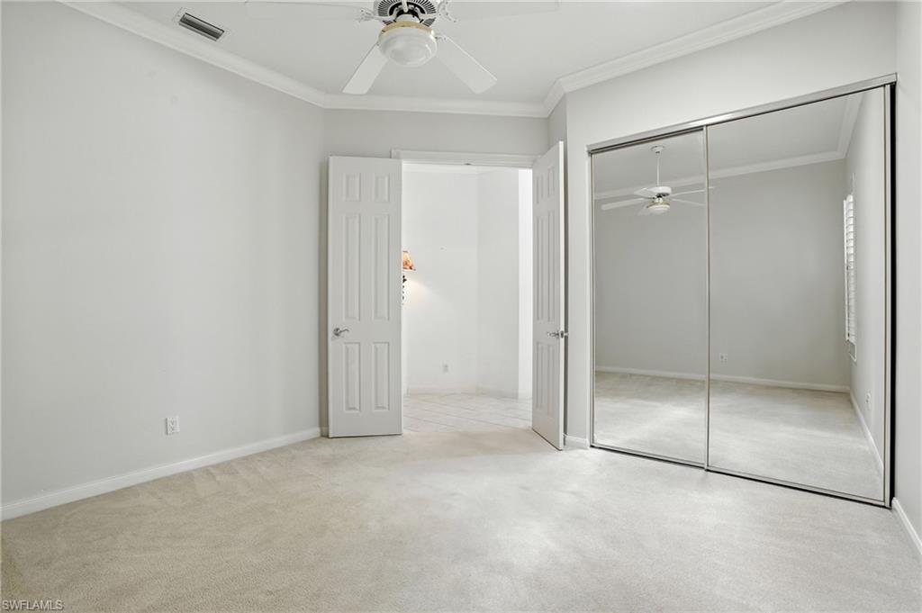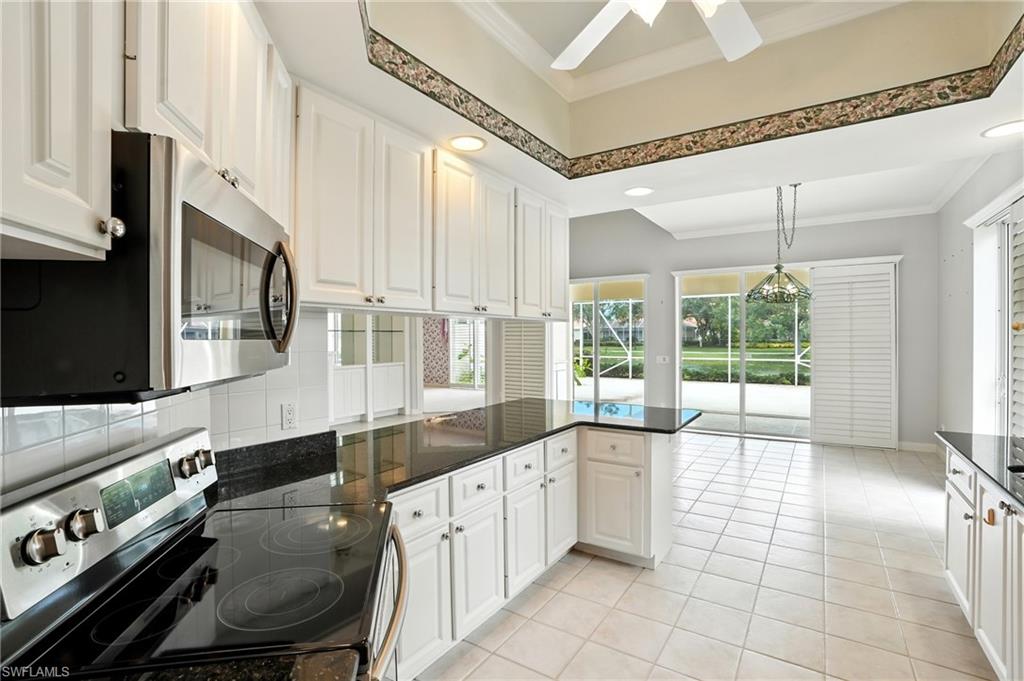 Step inside this rare and highly sought-after OAKMONT model, 3 bedroom + Den / 2 bath home, positioned on an oversized waterfront corner lot at the end of a quiet cul-de-sac. Let's talk peace of mind: NO FLOOD ZONE, DIVOSTA POURED CONCRETE BUILD, AUTOMATIC HURRICANE SHUTTERS, 2019 ROOF, NEWER AC & WATER HEATER, and whole house surge protection system! Your future home boasts an open-concept layout with custom media built-ins, elegant plantation shutters, recessed lighting, crown moulding throughout, and custom closets in every room. The eat-in kitchen features stainless steel appliances and easy access to your indoor and outdoor living spaces. This home offers everyday convenience with extra storage in the garage and a large laundry room with cabinetry and laundry tub! You will enjoy serene mornings on your extended lanai overlooking sparkling lake views and charming bridges leading to walking and biking trails. The screened in lanai includes a covered area perfect for outdoor dining/entertainment and plenty of room for a pool. Beyond your doorstep, Village Walk is showcased by lush tree-lined streets, scenic walking paths, and an abundance of resort-style amenities: competitive tennis & pickleball, fitness center, lap & resort-style pools, bocce courts, restaurant & bar, beauty salon, on-site travel agency, and even a post office. The vibrant Town Center hosts family movie nights, chef dinners, coffee socials, car shows, and more! Don't miss your chance to live in one of North Naples’ most sought-after gated communities -west of I-75, minutes from Naples beaches, shopping, dining, and more.