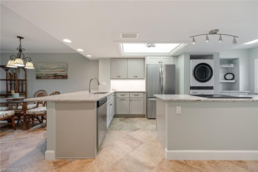 Experience the Best of Beach & Boating at Harbour Pointe Live the ultimate coastal lifestyle in this beautifully updated and turnkey-furnished 2-bedroom, 2-bath waterfront condo at Harbour Pointe on the desirable south end of Fort Myers Beach. Perfectly positioned, this residence offers sweeping canal and Estero Bay views, deeded beach access, and the true blend of luxury, comfort, and coastal charm. Step inside to an open-concept layout filled with natural light, luxury flooring, and a spacious kitchen featuring granite countertops, a full-size laundry center, convection range, and a large island—ideal for entertaining. The owner’s suite boasts direct lanai access, a walk-in closet, and a private ensuite bath, while the guest bedroom enjoys serene water views. A flexible entry space can serve as a dining nook, home office, or reading retreat. Relax on the wraparound screened lanai and soak in the breathtaking bay and canal scenery. Harbour Pointe offers a wealth of resort-style amenities: a bayfront pool and spa, clubhouse with ping-pong and pool tables, fitness center, tennis courts, BBQ areas, fishing pier, and a scenic boardwalk along Estero Bay. Owners also have exclusive access to Bay Beach Commons which features tennis, pickleball, and bocce courts as well as nature walking paths and private parking close to our owners-only beach access. Boat docks are available for purchase, with quick Gulf access via Fish Tale Marina—perfect for fishing, dolphin spotting, or a sunset cruise. Just a short walk to Santini Marina Plaza for shopping, dining, and the farmers market, and minutes from Lovers Key State Park, Bonita Springs, Naples, and RSW Airport, this location places you at the heart of it all. Whether you’re a boater, beach lover, or both, this move-in-ready condo has it all. Don’t miss your chance to own a piece of paradise at Harbour Pointe!