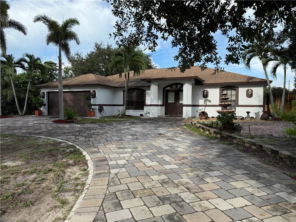Experience the best of Bonita Springs in this charming 3-bedroom + den, 2-bath home situated on nearly an acre (.85) and offering 1,770 sq. ft. of living space with an updated roof (2019). Inside, enjoy a kitchen with stainless steel appliances and a bright open living area. Additional features include curbed paved driveway, a lanai, overlooking the paved backyard-perfect for gatherings. With a prime location conveniently located near Downtown Bonita, Coconut Point Mall, Southwest Florida International Airport, and the Gulf Beaches. A versatile property ideal for first-time buyers, growing families, or investors! Experimenta lo mejor de Bonita Springs en esta encantadora casa de 3 dormitorios + den y 2 baños, situada en casi una acre (0.85) y que ofrece 1,770 pies cuadrados de espacio habitable con un techo actualizado (2019). En el interior, disfruta de una cocina con electrodomésticos de acero inoxidable y una luminosa sala de estar abierta. Las características adicionales incluyen un camino pavimentado con bordillo, un lanai, que da al patio trasero pavimentado, perfecto para reuniones. Con una ubicación privilegiada conveniente cerca del centro de Bonita, el centro comercial Coconut Point, el Aeropuerto Internacional del Suroeste de Florida y las playas del Golfo. ¡Una propiedad versátil ideal para compradores primerizos, familias en crecimiento o inversionistas!