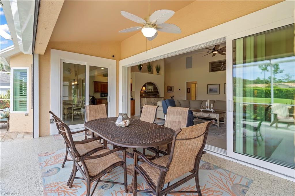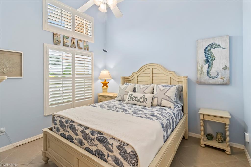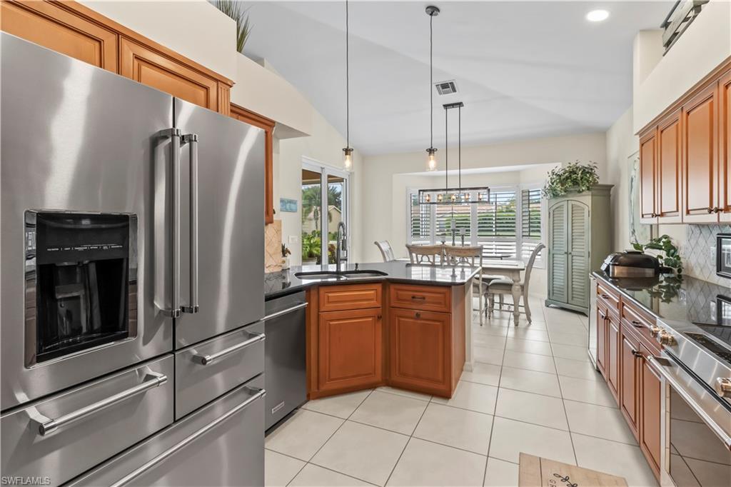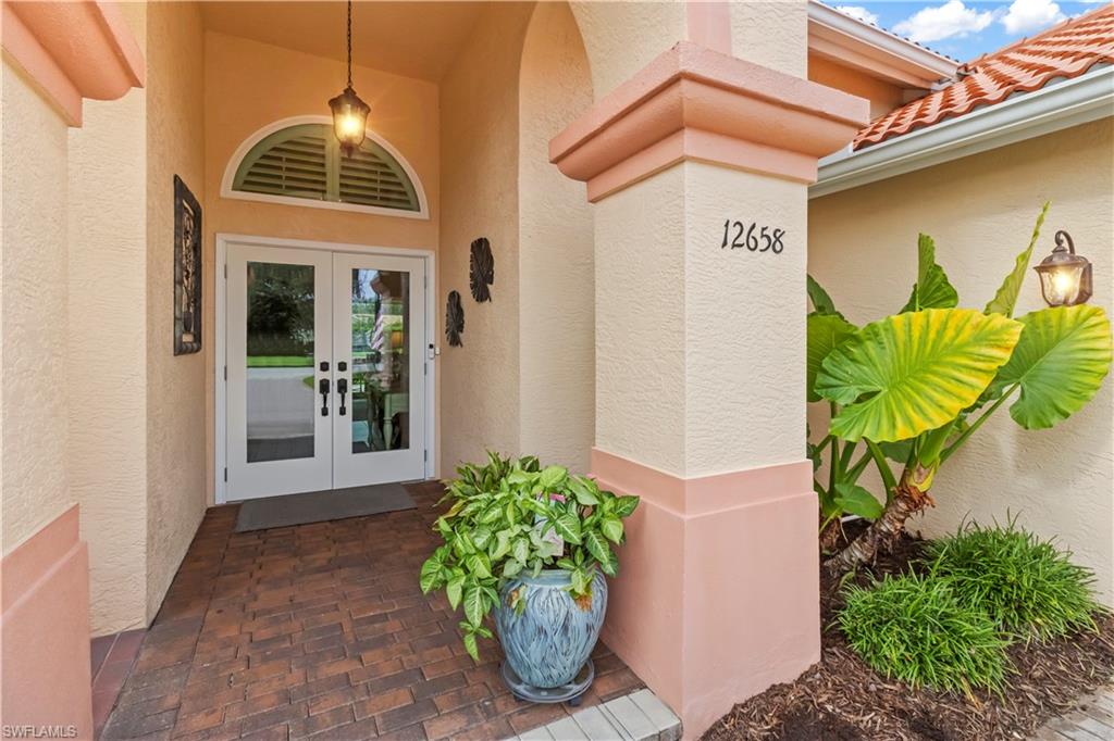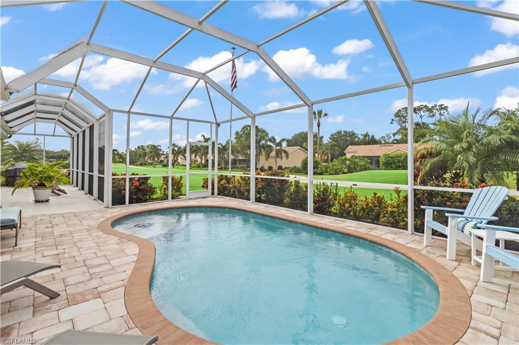 This Hunters Ridge Golf & Country Club Coastal-Beach-Inspired Pool Home sits on an oversized 1/3-acre lot & is lushly landscaped. A private slice of Florida paradise can be found in this beautifully remodeled 3-bedrm/2-bathrm, single-family pool home w/sweeping views of the 6th fairway. Every detail has been thoughtfully curated for comfort, style & effortless living. A tile roof (2018), paver driveway/walkway & a double door entry welcome you inside to a light-filled great rm w/towering ceilings & a wall of pocket sliding glass doors (2024) which look out to an expansive lanai, salt-water heated pool & golf course. The chef's kitchen has stainless-steel KitchenAid appliances, Cornerstone slow-close wood cabinetry w/pull-out drawers, granite countertops & a walk-in pantry. The Owner's Suite is a peaceful retreat w/a custom walk-in closet & pocket sliders to enjoy views of the serene outdoors while lounging in bed. The luxurious ensuite bathrm has dual sinks & vanity w/granite countertop, jetted tub & walk-in shower. The 2 guest bedrms are spacious & share a bathrm-all w/high ceilings & designer accents. One guest bedrm has a large walk-in closet & a Murphy bed for smart guest accommodations allowing it to also double as an office. Plantation shutters & tile floors thru out offer a cozy & chic coastal vibe while also creating a clean, cohesive feel! UPGRADES: • 2019: Sparkling saltwater heated pool w/paver deck & screened cage, perfect for sunny afternoons & moonlit swims. • 2021: Hurricane-impact windows & front door for peace of mind. • 2023: New A/C plus updated lighting & hardware. • 2024: Sleek new sliding glass doors to the lanai & epoxy flooring adds polish to your outdoor retreat. A spacious south-facing covered Lanai welcomes you to Florida's outdoor living - free from the sun & rain so it can be used year-round at any time of the day! Enjoy the comfort of your own separate X-large pool area to relax, lounge or to enjoy watching the golfers! Laundry rm has a washer/dryer, cabinetry & a utility sink. Extended garage w/built-in cabinetry keeps everything organized. Home is NOT IN A FLOOD ZONE! Beyond your door, Hunters Ridge boasts a resort lifestyle! Home comes w/SOCIAL MEMBERSHIP which allows access to the heated pool & spa, café, indoor/outdoor dining, 19th Hole bar, 8 pickleball cts, 2 clay tennis cts, basketball, bocce, fitness rm & card rm. With an OPTIONAL GOLF MEMBERSHIP players can enjoy the redesigned 18-hole championship course, driving range, short-game areas & indoor simulators. There are plenty of planned activities too! Live music & events thru out the year for all residents to enjoy! Just 6 miles from pristine Gulf beaches & boating! Minutes to I-75, FT Myers Int'l Airport & all Bonita Springs & Naples have to offer- restaurants, shopping & entertainment! There are parks/recreation, hospitals & physicians nearby too! This is more than a home - it’s your gateway to the Southwest Florida lifestyle you’ve been dreaming of!