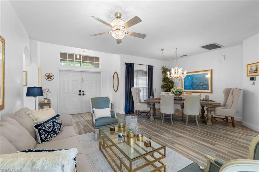 Welcome to your dream home in the desirable gated Briarwood community of Naples, FL, offering low HOA fees. This beautifully updated, fully furnished single-family home boasts 4 bedrooms, 3 full baths, and an array of modern upgrades, ready for you to move in and enjoy immediately. Step inside to discover a formal living and dining room with views of the pool, a bright, open-concept great room with vaulted ceilings, recessed lighting, ceiling fans, and new automated blinds, seamlessly flowing into a gourmet kitchen featuring a large island, stainless steel appliances, white cabinetry, granite/marble countertops, a pantry, wine fridge, and cozy breakfast area. Laminate and hardwood floors flow throughout, complemented by high-end window treatments and fresh interior/exterior paint. The primary suite is a luxurious retreat with an ensuite bathroom showcasing dual sinks, a walk-in shower, jetted tub, and an organized walk-in closet. Two bedrooms share a well-appointed hall bathroom, while the fourth bedroom enjoys its own ensuite bath. This same full bath offers easy pool access for convenience. Outside, relax in your private oasis featuring a saltwater pool with a new heater and pump, a brick lanai, and southwest exposure offering sunset views over a serene preserve. The meticulously landscaped yard includes a sprinkler system, and the home is equipped with a combination of automatic and manual hurricane shutters, a new garage door opener, and a two-car attached garage with a brick driveway and walkway. Modern upgrades include a new HVAC system, new water heater, smart thermostat, security video cameras, Ring doorbell, and a home generator system with warranty and buried gas tank for peace of mind. Extra stainless steel refrigerator/freezer combo and shelving in garage. Centrally located in Naples, this home offers easy access to the best of Southwest Florida’s dining, shopping, and beaches. Don’t miss this opportunity to own a turnkey masterpiece in Briarwood, where luxury and convenience meet. Schedule your private showing today and start living the Naples lifestyle! Mortgage savings may be available for buyers of this listing.