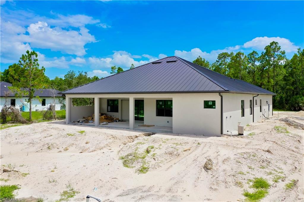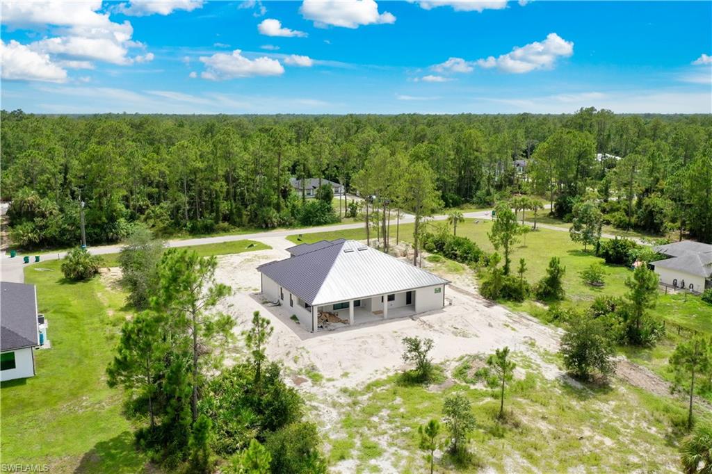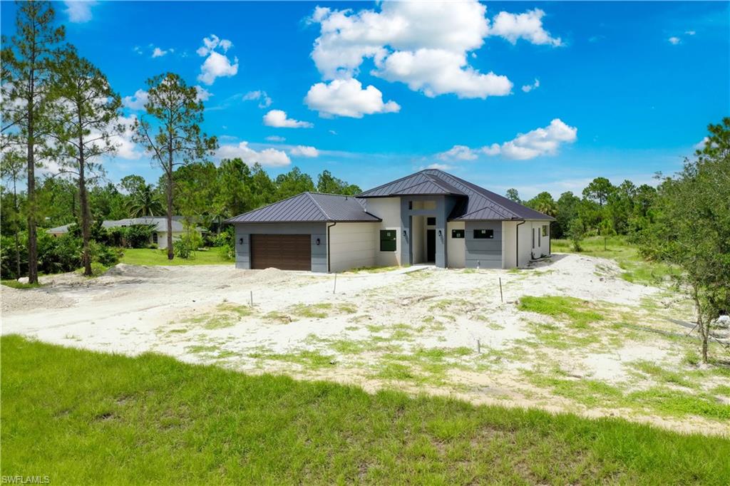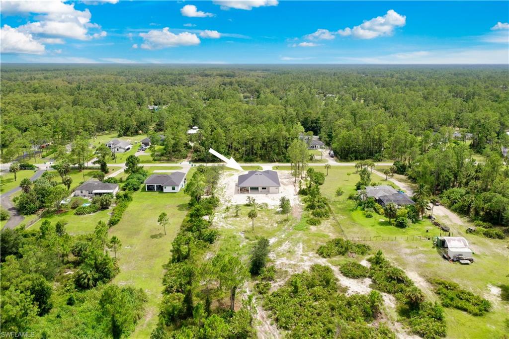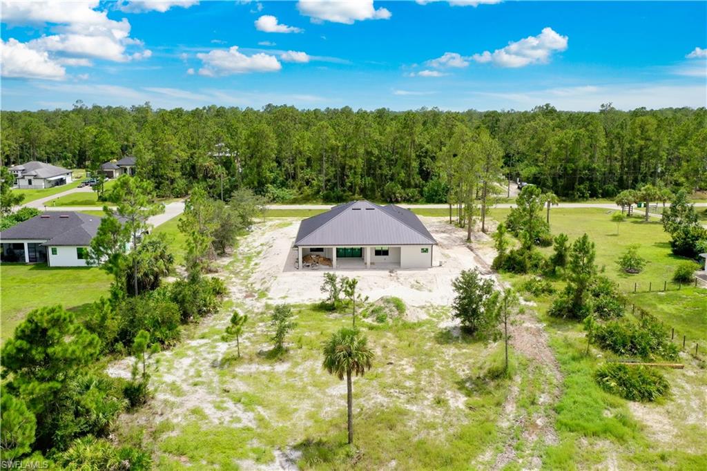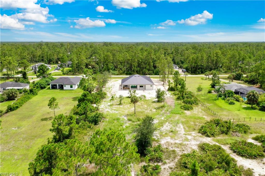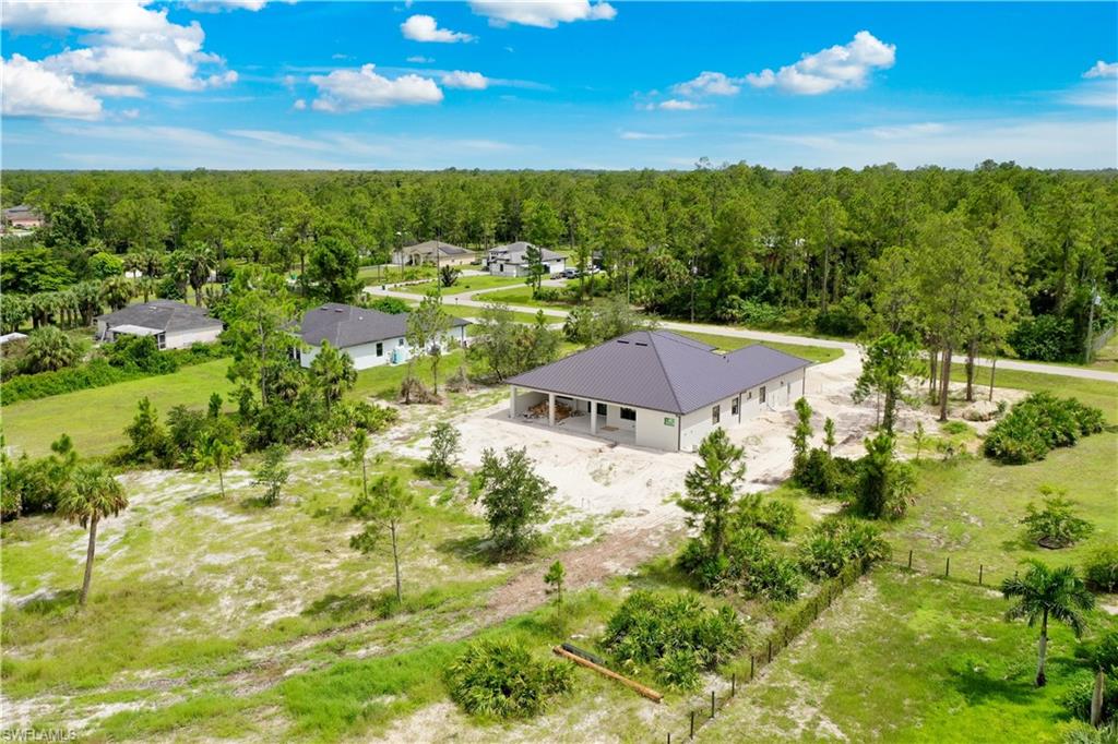 Welcome to your future dream home in the estates! This beauty is in the final stages of completion, Stunning Wellington model is thoughtfully situated on a 100% upland 2.73-acre parcel, offering privacy, space, and endless potential to create your ideal Florida lifestyle. With 3,767 total square feet and 2,416 square feet under air, this custom-designed residence combines open-concept living with timeless architectural details. As you step into the grand entryway, you’ll be welcomed by soaring 16-foot ceilings, an airy and spacious layout, and high-end finishes that are being carefully crafted with attention to detail. At the heart of the home, a chef-inspired kitchen—featuring solid wood cabinetry, a large center island, dual pantry cabinets, and a custom backsplash, all designed to seamlessly flow into the main living area for easy entertaining. Pocketing sliding glass doors create a 12-foot-wide opening that connects the interior living space to the under-truss lanai, offering an effortless blend of indoor-outdoor living. The outdoor area is complete with a summer kitchen which is part of the planned design and picture window lanai screening offers unobstructed views to the rear yard. Direct access from the outdoor area to the third full bathroom, this space is perfectly positioned to serve as a future pool bath once your outdoor oasis is complete. The primary suite will be a luxurious retreat with an 11-foot tray ceiling, dual walk-in closets with wood shelving, and large windows overlooking the backyard. The en-suite bathroom will feature a 9-foot dual-sink vanity, freestanding soaking tub, and a spacious walk-in shower. Three additional guest bedrooms, each with 10-foot ceilings, provide comfort and space for family or visitors. Thoughtfully designed for durability and efficiency, the home includes impact doors and windows, a metal roof, whole-house reverse osmosis system, two-zone A/C, generator-ready water setup with gravity-fed septic, and a Taexx pest control system with termite baiting. The oversized garage is finished with epoxy coated floors and upgraded impact modern style 3-layer insulated garage door. Let your imagination run wild with the land that offers plenty of room for a future pool, detached structures, gardens, horses...this one-of-a-kind estate offers endless possibilities for customization and expansion. Scheduled for completion December 2025.